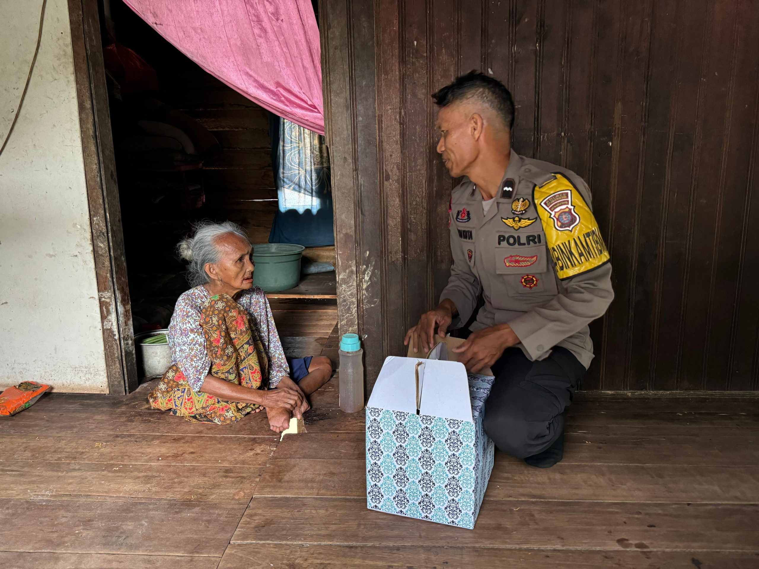 Kotim – Dalam rangka menyambut Hari Ulang Tahun (HUT) Bhayangkara ke-79, Posek Krtapang Polres Kotawaringin Timur Polda Kalteng memberikan rasa kepedulian terhadap masyarakat dengan melaksanakan kegiatan pembagian Bantuan Sosial (Bansos) yang ditujukan untuk waga lansia dan anak yatim di Desa Terantang Kec Seranau Kab Kotim..