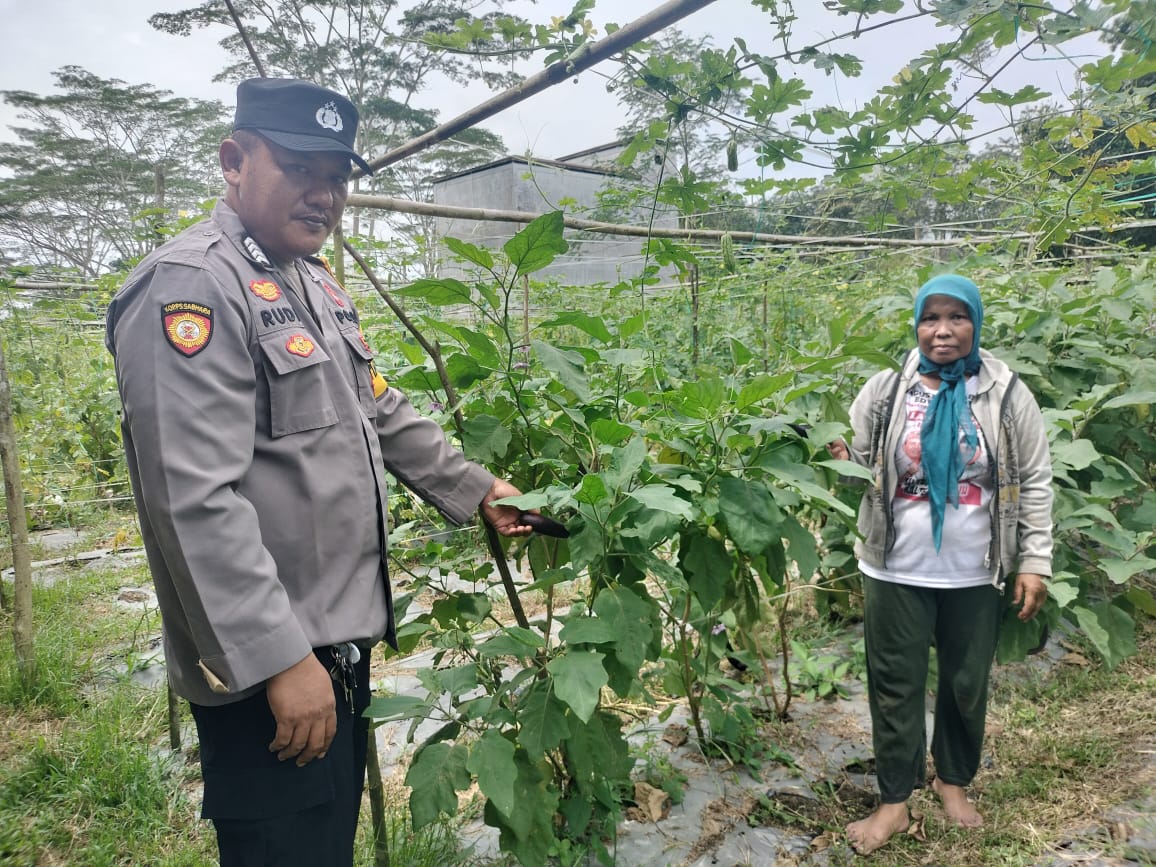 Dalam kegiatan itu, BRIPKA RUDIANUR melakukan pengecekan pekarangan pangan milik Sdri. YATI yang membudidayakan tanaman Holtikultura (kacang panjang, terong, cabe) sembari memberikan motivasi kepada warga agar dapat memanfaatkan pekarangannya untuk pertanian, peternakan, dan perikanan secara terbatas sehingga manfaatnya dapat dirasakan secara ekonomi maupun mencukupi gizi masyarakat sekitar.