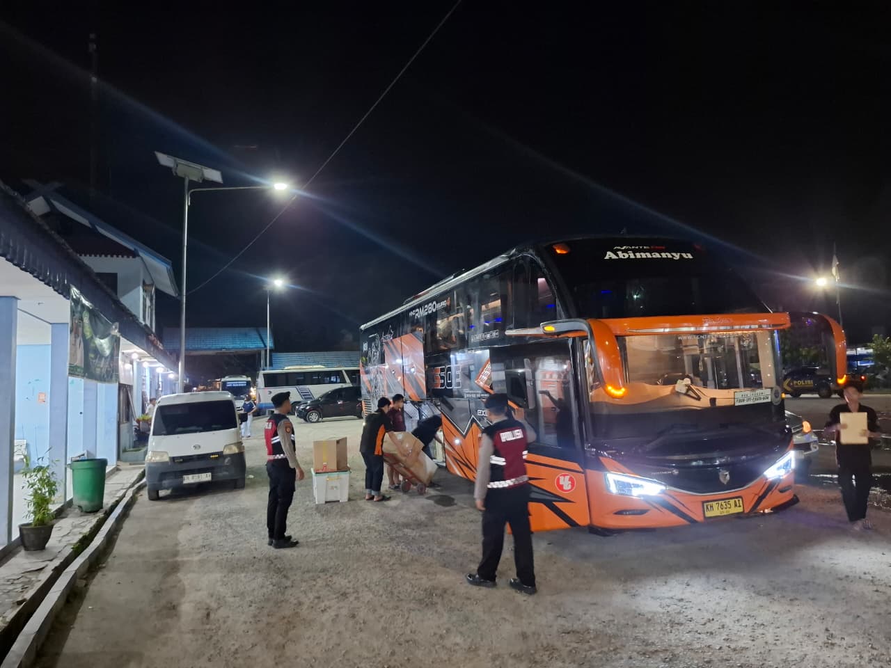 Terminal Bus Patih Rumbih jadi titik singgah berikutnya. Petugas berdialog dengan sopir dan penumpang yang masih beraktivitas malam hari. Imbauan khusus diberikan kepada para sopir bus. Mengingat Sampit memasuki musim penghujan dan banyak jalan tergenang air, sopir diminta tidak memaksakan kecepatan. “Utamakan keselamatan. Jalan licin dan banjir bisa picu laka. Lebih baik lambat asal selamat,” tegas Briptu Septo.