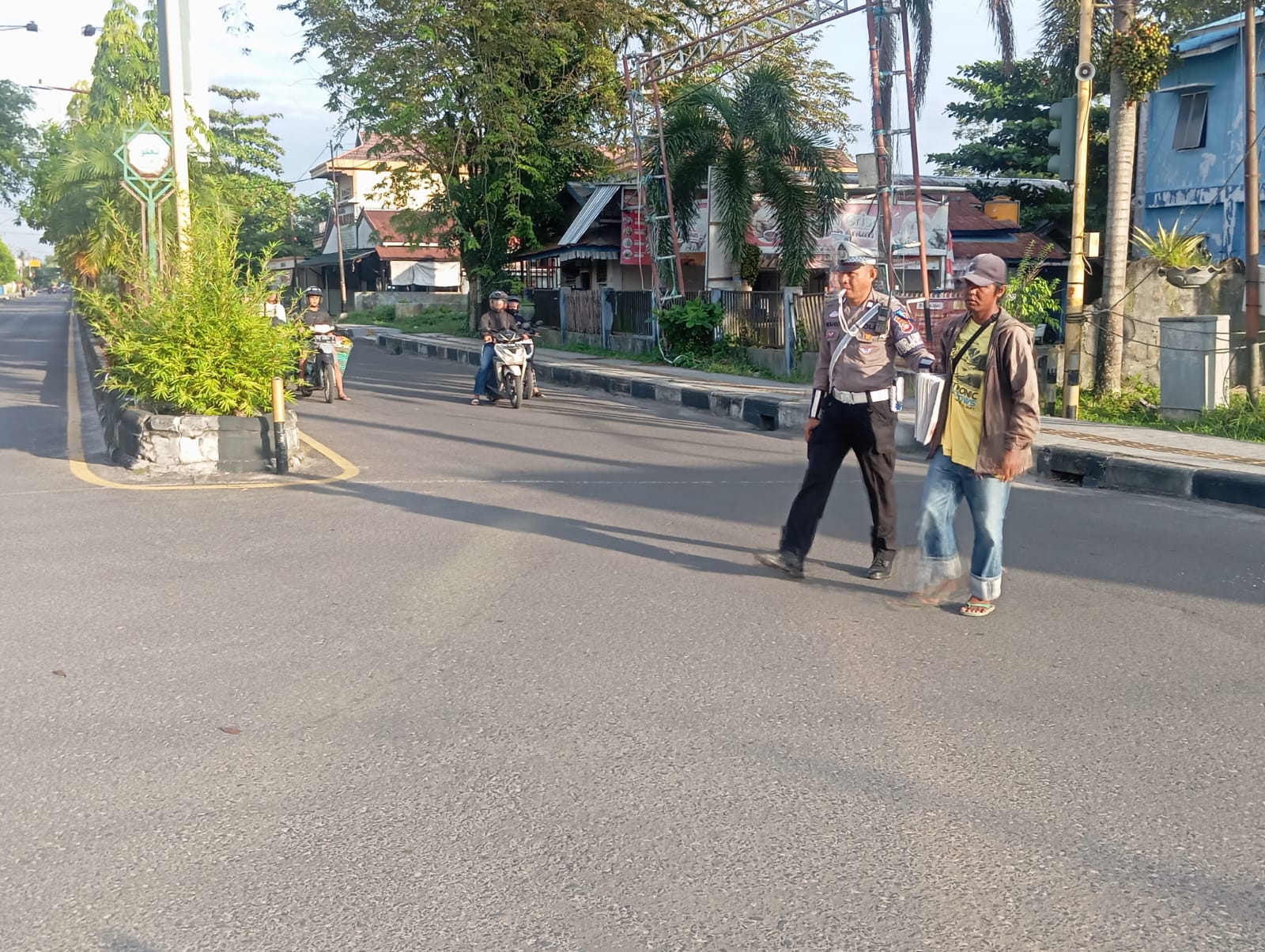 “Saat kegiatan Personil juga bantu masyarakat Menyebrang jalan, Dengan melaksanakan kegiatan ini Satlantas Polres kotim hadir di tengah masyarakat.