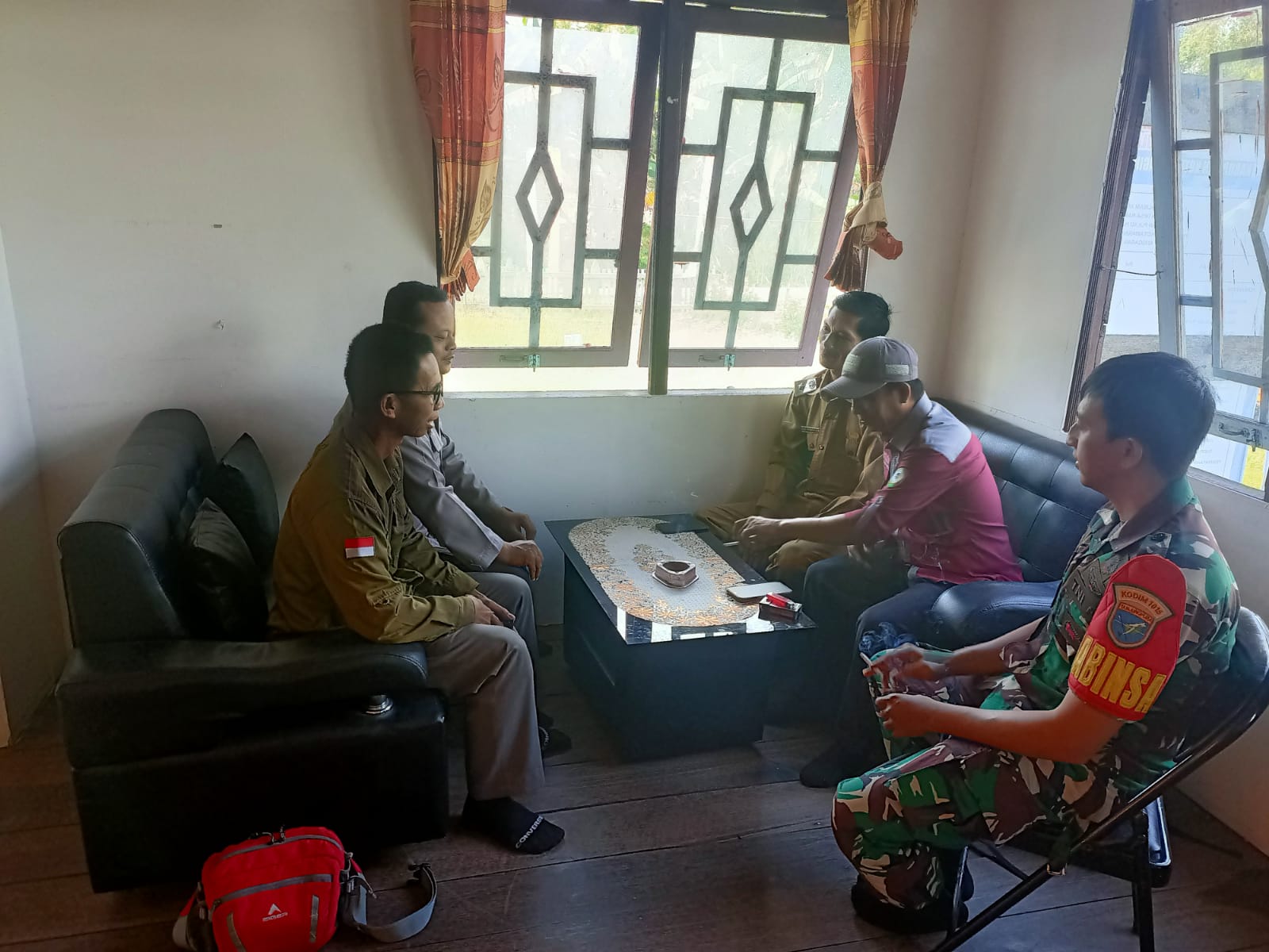 Pulau Hanaut ~ Guna Menjaga Harkamtibmas wilayah Kec.Pulau Hanaut, Personil Polsek Pulau Hanaut Aipda Suryadi Bersama Personil Pos Koramil Kopda Sandi melaksankan sambang ke kantor Desa Rawa Sari Kecamatan Pulau Hanaut Kab.Kotim Prov.Kalteng, Selasa (29/7/2025).