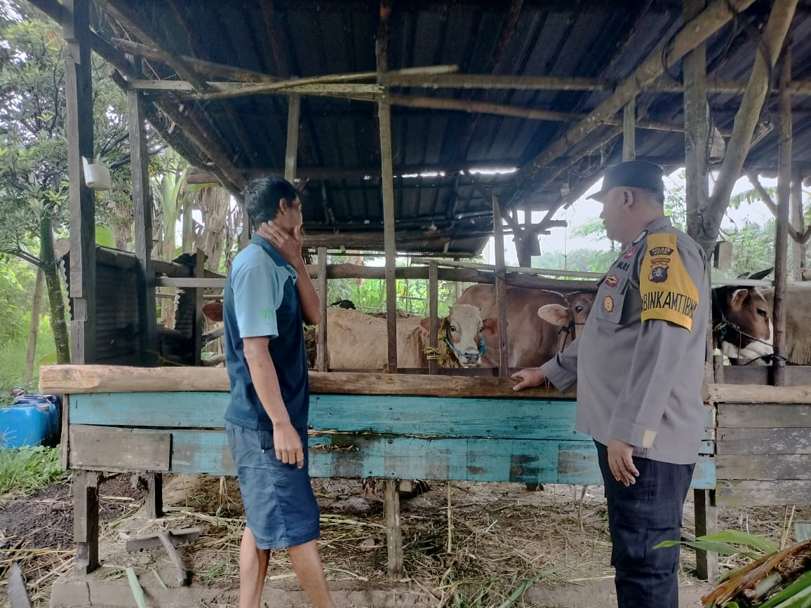 Dalam kegiatan itu, BRIPKA RUDIANUR melakukan pengecekan pekarangan pangan milik sdr. Nur yang digunakan untuk memelihara ternak sapi sembari memberikan motivasi kepada warga agar dapat memanfaatkan pekarangannya untuk pertanian, peternakan, dan perikanan secara terbatas sehingga manfaatnya dapat dirasakan secara ekonomi maupun mencukupi gizi masyarakat sekitar.