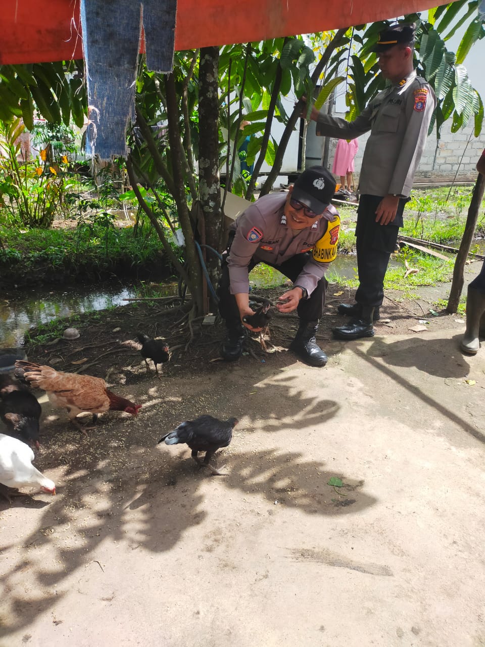 Kapolsek Baamang, AKP Moch. Romadhon, S.H., M.M., bersama Bhabinkamtibmas AIPTU NUR HASAN melakukan pengecekan terhadap pekarangan pangan milik Jayadi yang memanfaatkan lahan sekitar rumahnya untuk membudidayakan peternakan ayam potong.