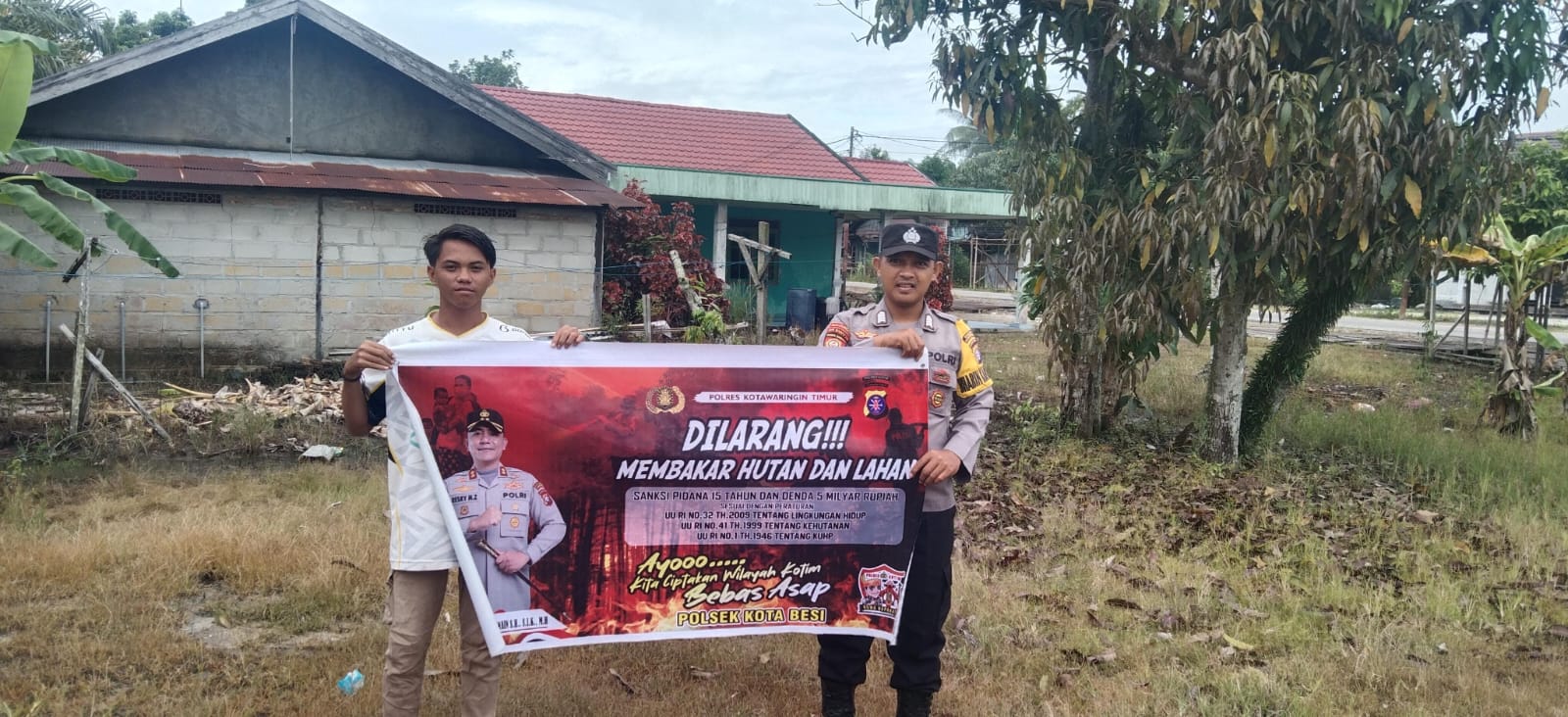 Kotim – Personel Piket Polsek Kota Besi jajaran polres Kotim Polda Kalteng mensosialisasikan bahaya kebakaran hutan dan lahan (Karhutla) dan sanksi pidana yang dapat dikenakan terhadap pelaku Karhutla tersebut. Jumat, 26/09/2025 jam 08.00 Wib.