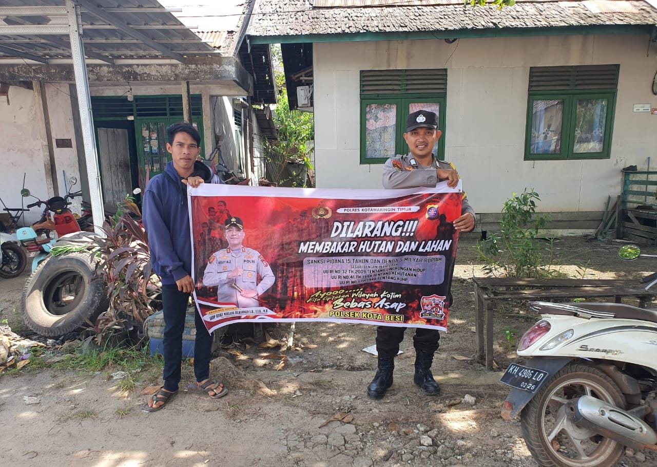 Personel Piket Polsek Kota Besi sosialisasi bahaya dan pidana terhadap pelaku Karhutla.