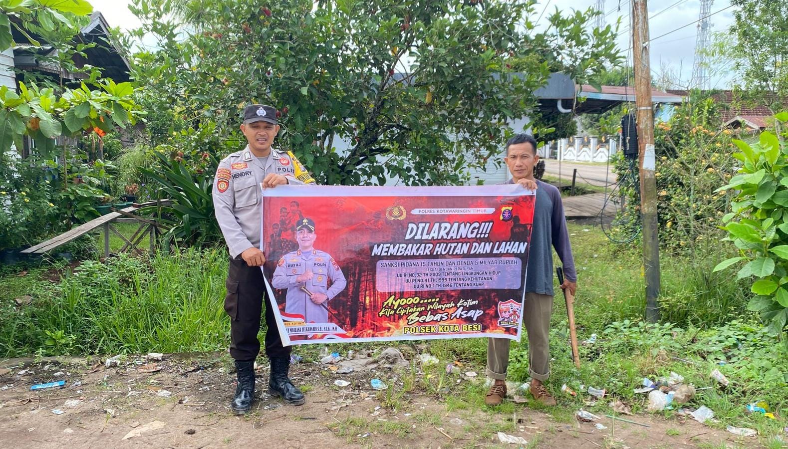 Personel Piket Polsek Kota Besi sosialisasi bahaya dan pidana terhadap pelaku Karhutla.