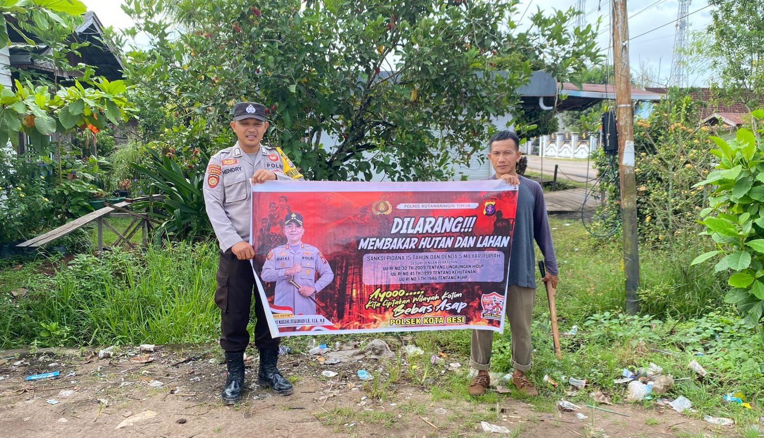 Kotim – Personel Piket Polsek Kota Besi jajaran polres Kotim Polda Kalteng mensosialisasikan bahaya kebakaran hutan dan lahan (Karhutla) dan sanksi pidana yang dapat dikenakan terhadap pelaku Karhutla tersebut. Minggu, 18/01/2026 jam 08.00 Wib.