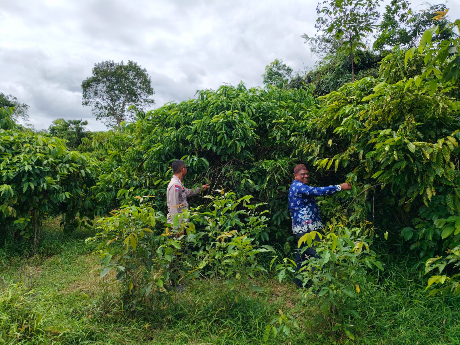 Kegiatan yang dilakukan personel piket Polsek Pulau Hanaut di Desa Hanaut ini untuk membantu petani dalam proses perawatan dan panen di pertanian kopi milik Sdr. Eno Desa Hanaut Kec. Pulau Hanaut Kab. Kotim, Rabu (14/1/2026).