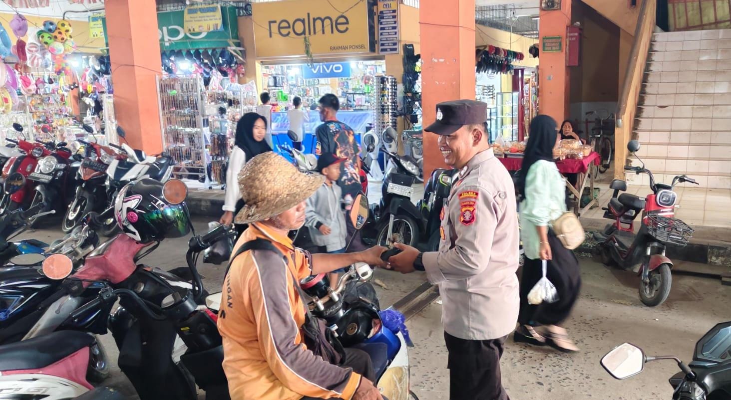 Personel Polsek Jaya Karya melaksanakan Patroli rawan pagi di kawasan Komplek Pasar PPM secara Dialogis untuk mencegah aksi premanisme.