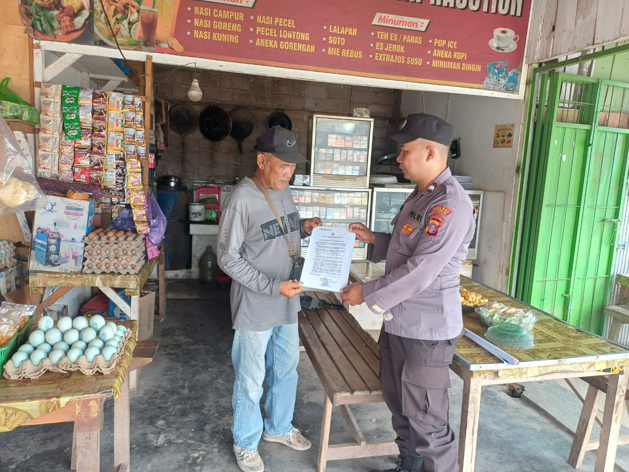 Kotim – Personel Polsek Telawang Polres Kotim (Kotawaringin Timur) Polda Kalteng laksanakan sosialisasi Maklumat Kapolda Kalteng tentang larangan membakar hutan dan lahan di desa Sebabi Kecamatan Telawang Kabupaten Kotim, Rabu (15/10/2025), pukul 09.00 WIB