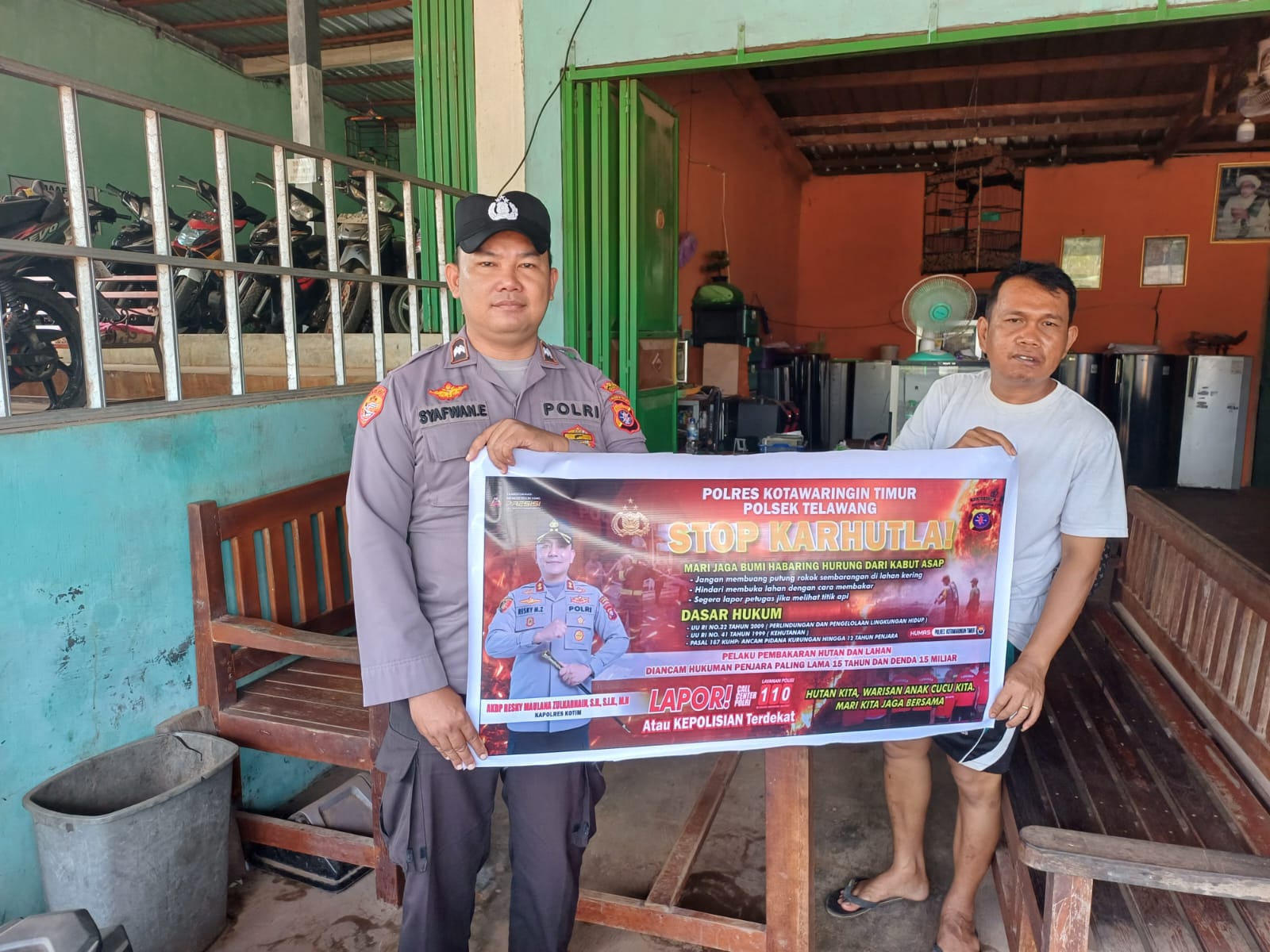 Kotim – Personel Polsek Telawang Polres Kotim (Kotawaringin Timur) Polda Kalteng laksanakan sosialisasi Maklumat Kapolda Kalteng tentang larangan membakar hutan dan lahan di desa Sebabi Kecamatan Telawang Kabupaten Kotim, Sabtu (31/1/2026), pukul 09.00 WIB