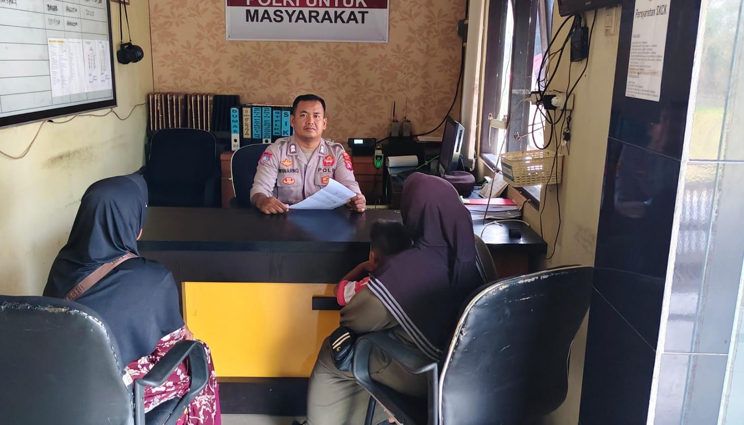 Personel SPKT Polsek Jaya Karya Memberikan Pelayanan Kepada warga Masyarakat yang datang melapor.