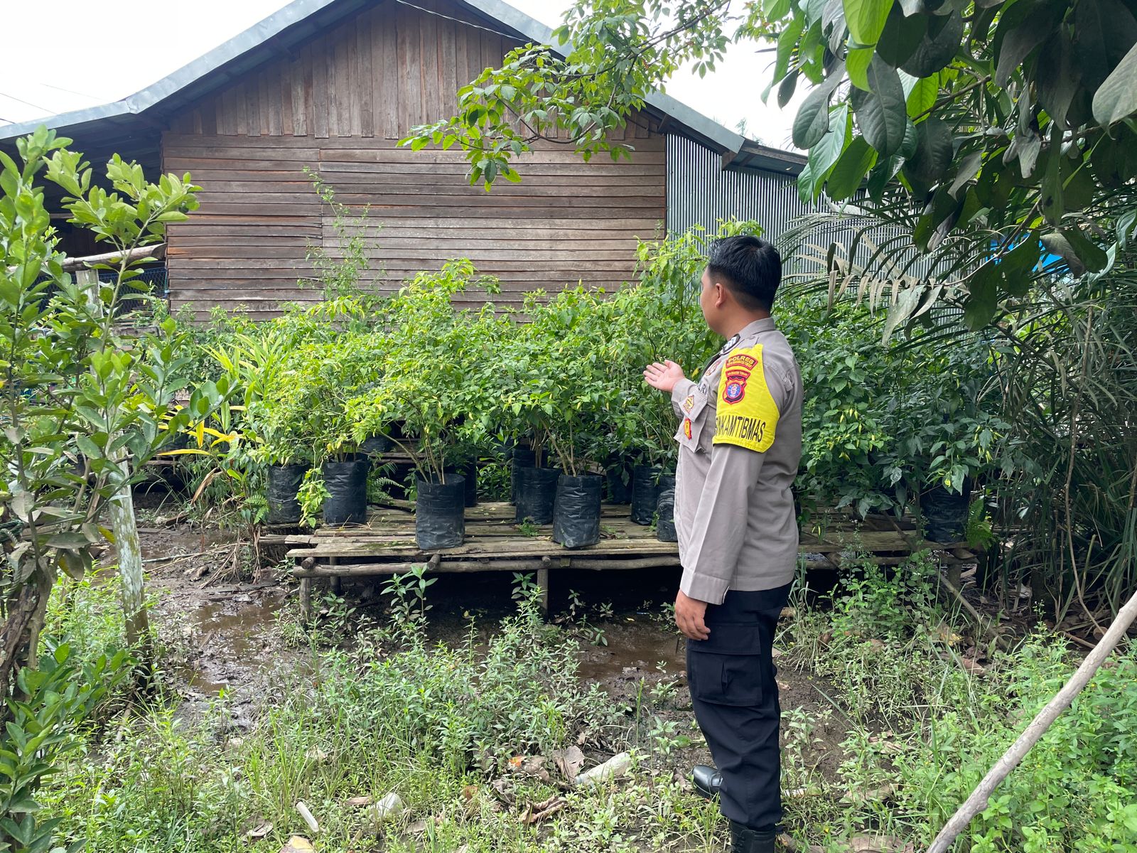 Kotim – Polsek Kota Besi Polres Kotawaringin Timur jajaran Polda Kalteng, kunjungi rumah warga yang memanfaatkan perkarangan rumah untuk Lahan Ketahanan Pangan di Kecamatan Kota Besi. Senin, (6/01/2025). Pagi