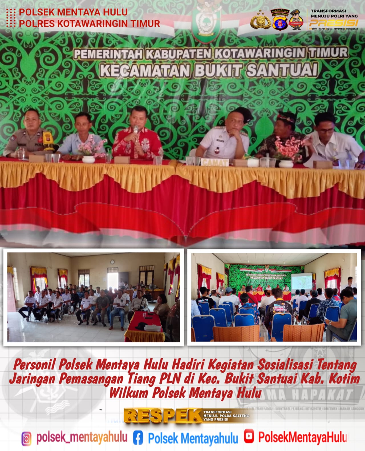 Kotim – Personil Polsek Mentaya Hulu Polres Kotim (Kotawaringin Timur) jajaran Polda Kalteng Aipda Hernius Markoni Hadiri Kegiatan Sosialisasi Tentang Jaringan Pemasangan Tiang PLN.di Kec. Bukit Santuai Kab. Kotim Prop.Kalteng. Selasa siang (20/1/2026)