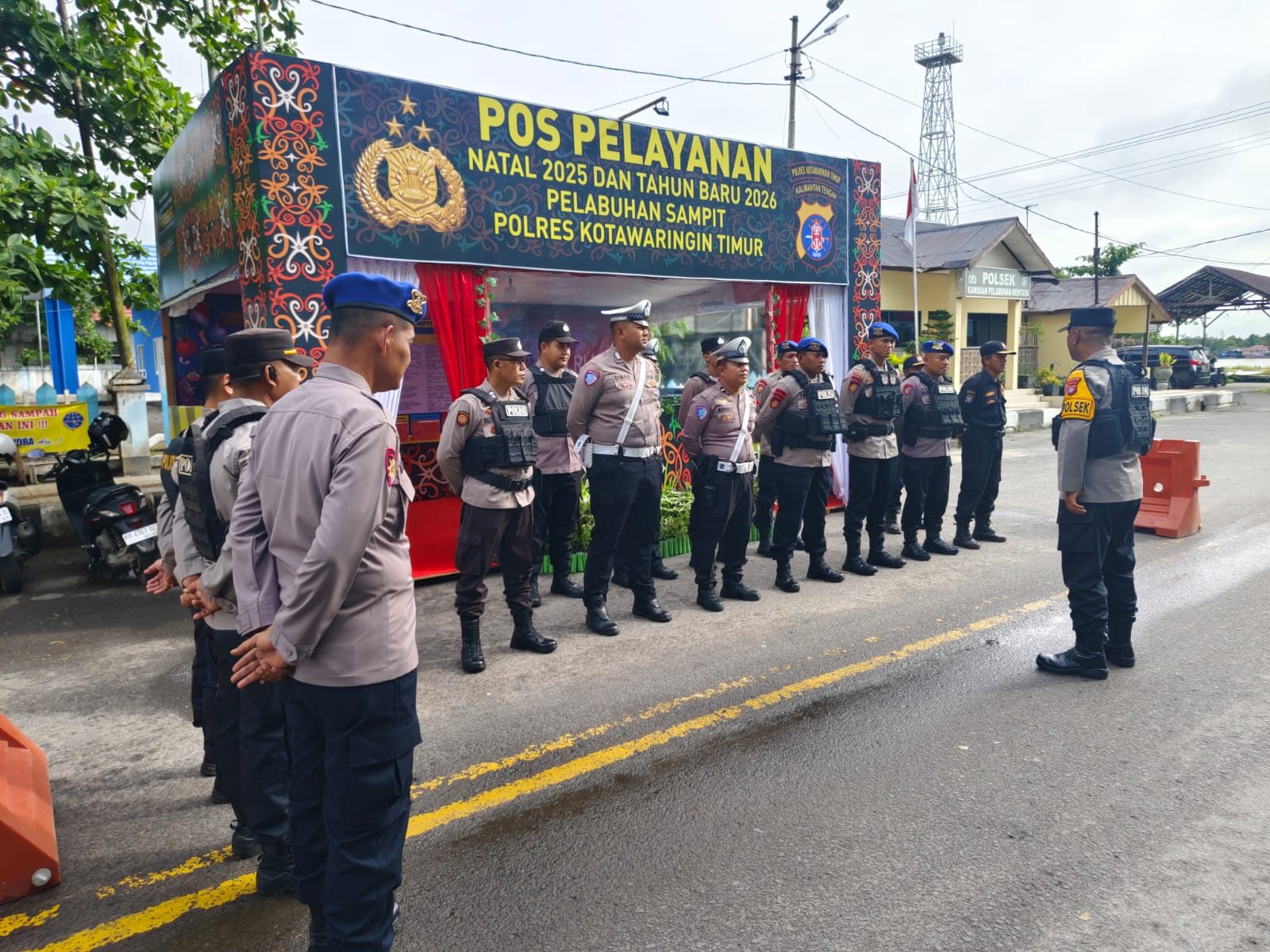 SAMPIT – Mengawali rangkaian pengamanan akhir pekan menjelang perayaan Natal dan Tahun Baru, jajaran personel gabungan melaksanakan Apel Pagi di Halaman Pos Pelayanan (Posyan) Pelabuhan, Jalan A. Yani, Komplek Polsek KP Mentaya, Sampit, Sabtu (20/12/2025).