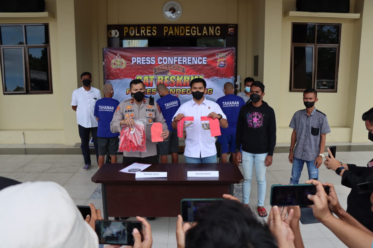 “Adapun tersangka pelaku pencurian hewan ternak yang berhasil ditangkap oleh Satreskrim Polres Pandeglang ialah AM, AE, SM, dan DD,” ucap Kapolres Pandeglang.