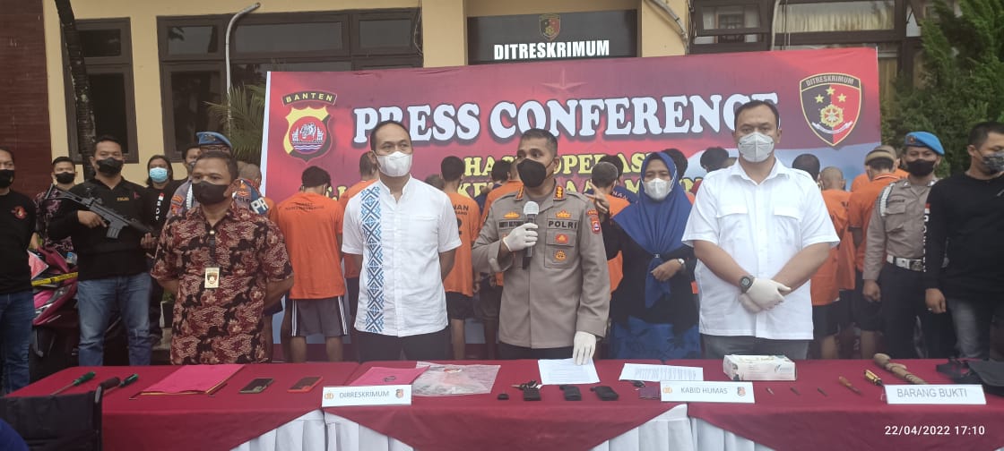 Kabid Humas Polda Banten Kombes Pol Shinto Silitonga menyampaikan sesuai instruksi Kapolda Banten, Polda Banten bergerak untuk menangkap para pelaku curat, curas, curanmor dan tidak segan untuk melakukan tindakan tegas terukur terhadap para penjahat jalanan tersebut,. “Selama 10 hari pelaksanaan Operasi Polda Banten dan Polres Jajaran berhasil mengamankan 54 orang tersangka dan barang bukti motor dan mobil hasil curian, beberapa diantaranya harus dilakukan penindakan tegas karena mencoba memberi perlawanan kepada petugas saat dilakukan penangkapan.”kata Shinto Silitonga saat Press Conference Didampingi Wadirreskrimum Polda Banten AKBP Syamsul Huda pada Jum’at (22/04).