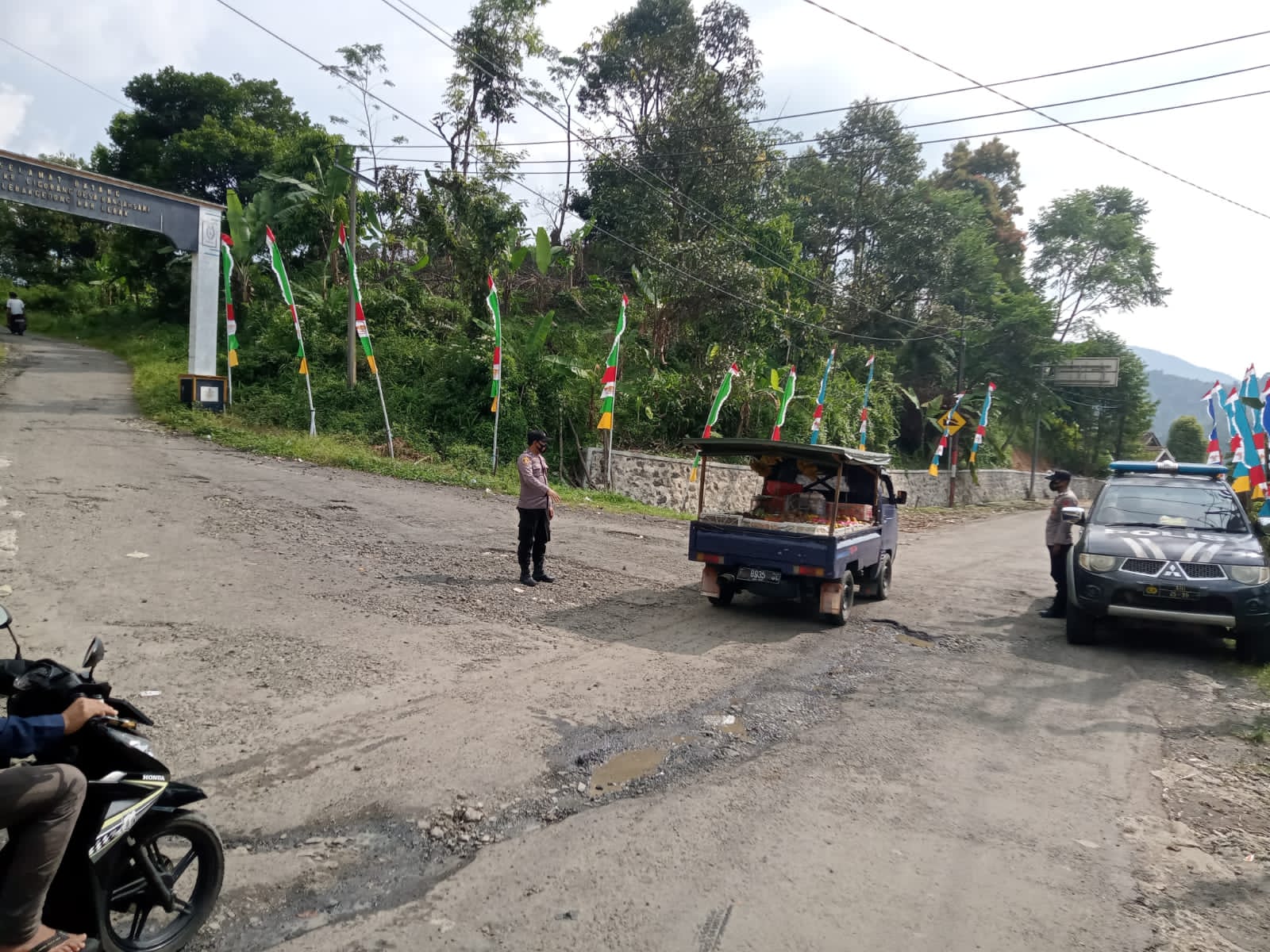 Baraknews Polsek Lebakgedong Polres Lebak. || Agar tercipta Kamseltibcarlantas dan menekan angka kecelakaan di wilayah hukum Polsek Lebak gedong Personil Polsek Lebakgedong, telah melaksanakan kegiatan pengaturan lalu lintas di simpang tiga Cigobang desa Banjarsari Kec Lebak gedong kabupaten Lebak, (16/08/2022)