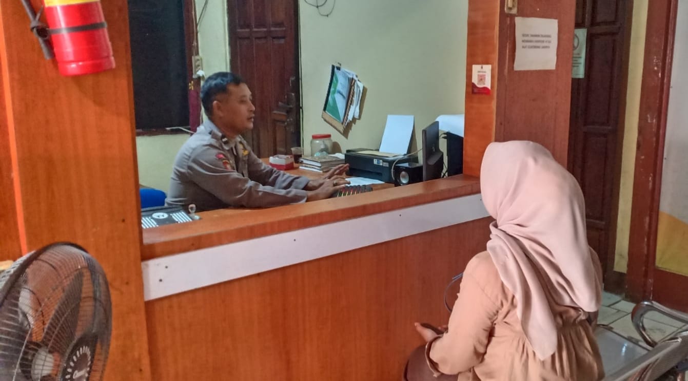 Kab. Tangerang-Dalam rangka meningkatkan kualitas pelayanan kepada masyarakat, SPKT Polsek Kresek Polresta Tangerang Polda Banten Aipda Sholeh memberikan Pelayanan kepada masyarakat dalam Layanan SPKT Polsek Kresek dengan Senyum Hangat dan Humanis, Sabtu (26/05/2025)