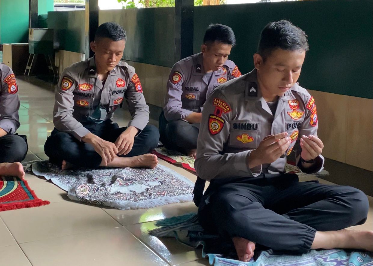 Disela-sela kegiatannya, para personel pengamanan yang ada di Pospam Pelabuhan Merak melaksanakan ibadah shalat dzuhur berjamaah bersama para pemudik. “Tadi juga anggota melaksanakan shalat dzuhur berjamaah bersama pemudik di Mushola dekat Pospam Pelabuhan Merak,” tuturnya.