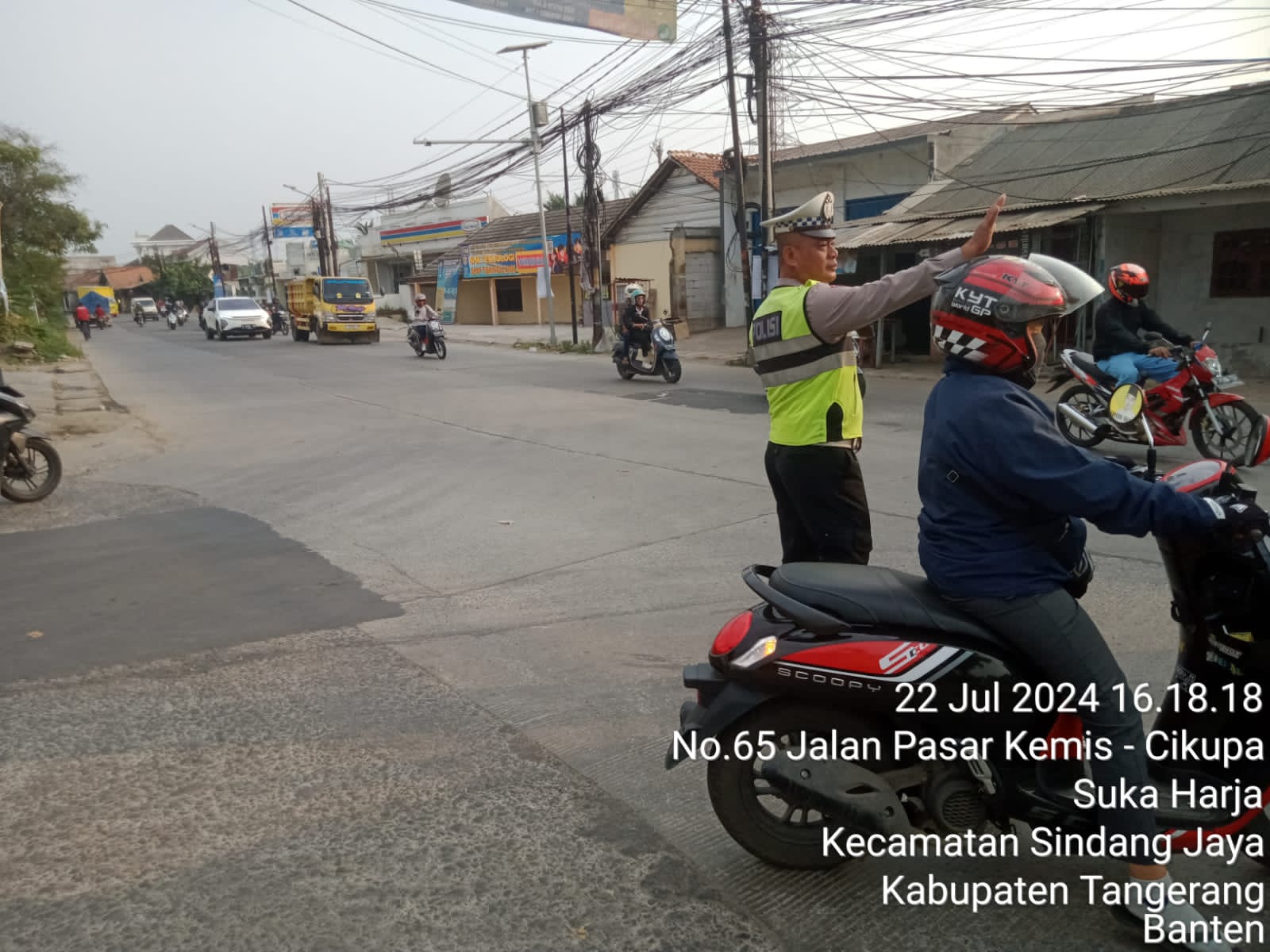 Tangerang – Demi terwujudnya pelayan prima, Personil lalu lintas Polsek Pasar Kemis Polresta Tangerang melakukan pengaturan lalu lintas untuk mengurai kemacetan bertempat di perempatan kebeng Jl. Raya Pasar Kemis-Cikupa kecamatan Pasar Kemis, pada Senin (22/07/2024) pukul 16.00 Wib.
