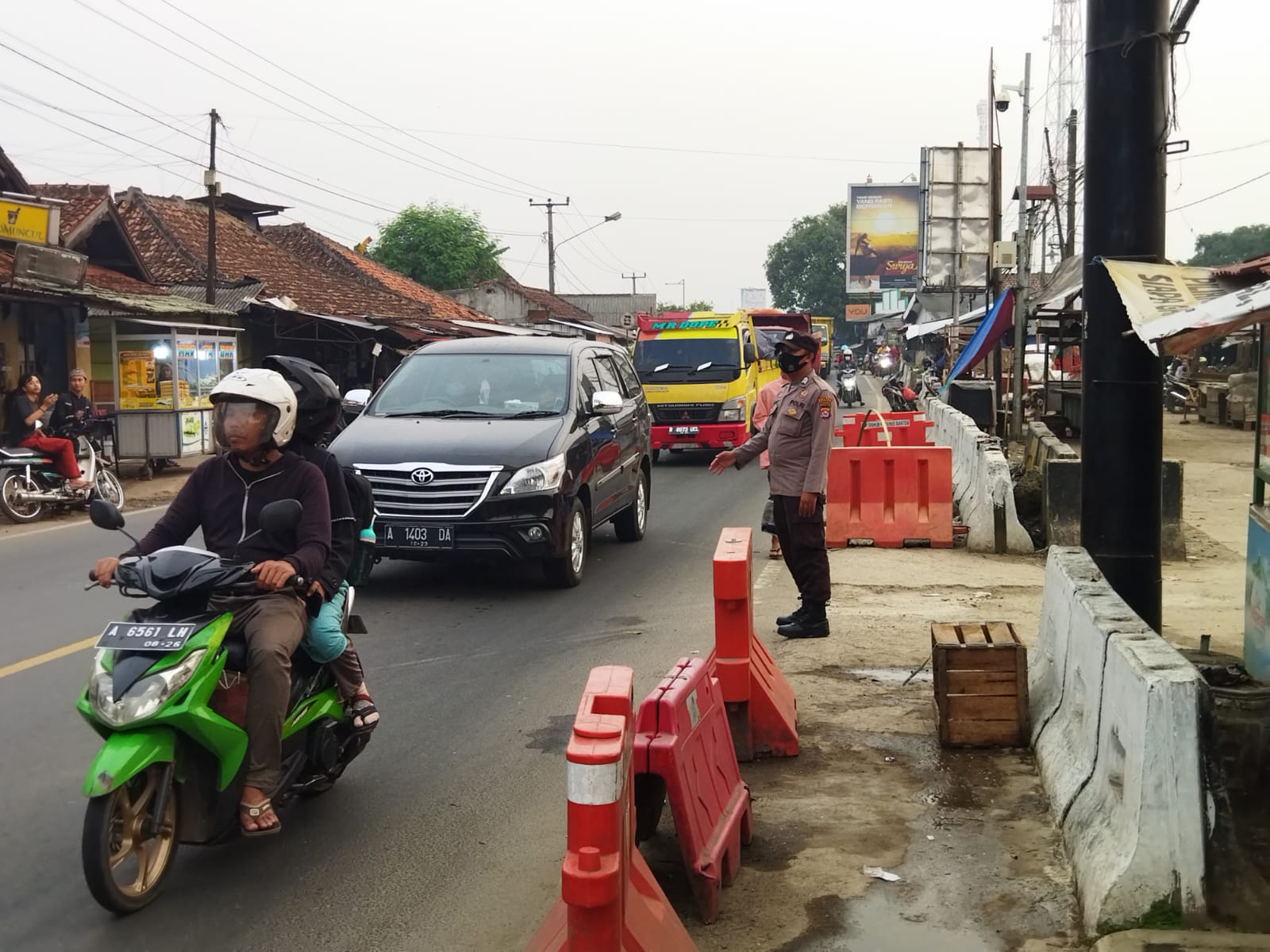Baraknews Polsek Baros Polresta Serkot * | Anggota Polsek Baros Polresta Serkot Polda Banten melaksanakan giat strong poin atau gatur lalin sore hari di ruas jalan Simpang Baros, Rabu (6/7/2022) sore.