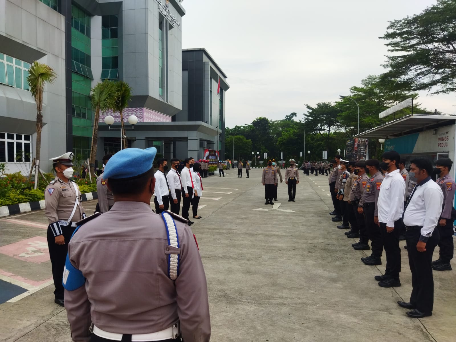 Baraknews Polresta Tangerang-Anggota Sat Intelkam Polresta Tangerang melaksanakan Apel Serah terima Piket di Halaman Polresta Tangerang yang dipimpin oleh pawas Kompol I Gede AP, SIK (Kasat Narkoba)