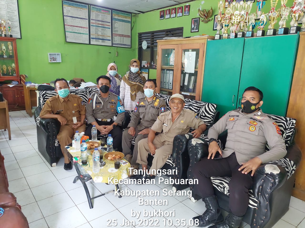 Baraknews POLRES SERKOT – Personil Polsek Pabuaran Polres Serkot Polda Banten Aipda Herlambang dan Bripka M. Agus Tomi melaksanakan patroli di Kantor Desa Tanjung Sari untuk antisipasi gangguan Kamtibmas. Selasa (25/01/2022).