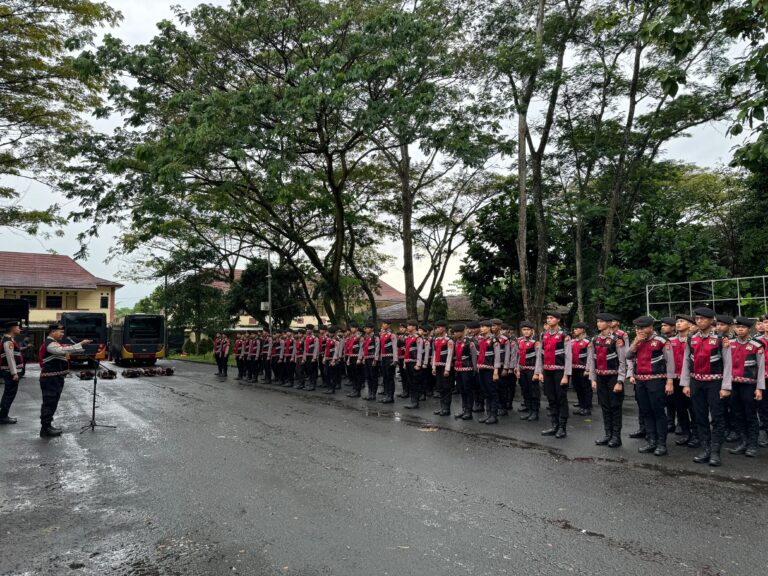 Serang–Ditsamapta Polda Banten gelar apel pemberangkatan kegiatan patroli jarak jauh satuan wilayah oleh personil Ditsamapta Polda Banten pada Sabtu (06/07).