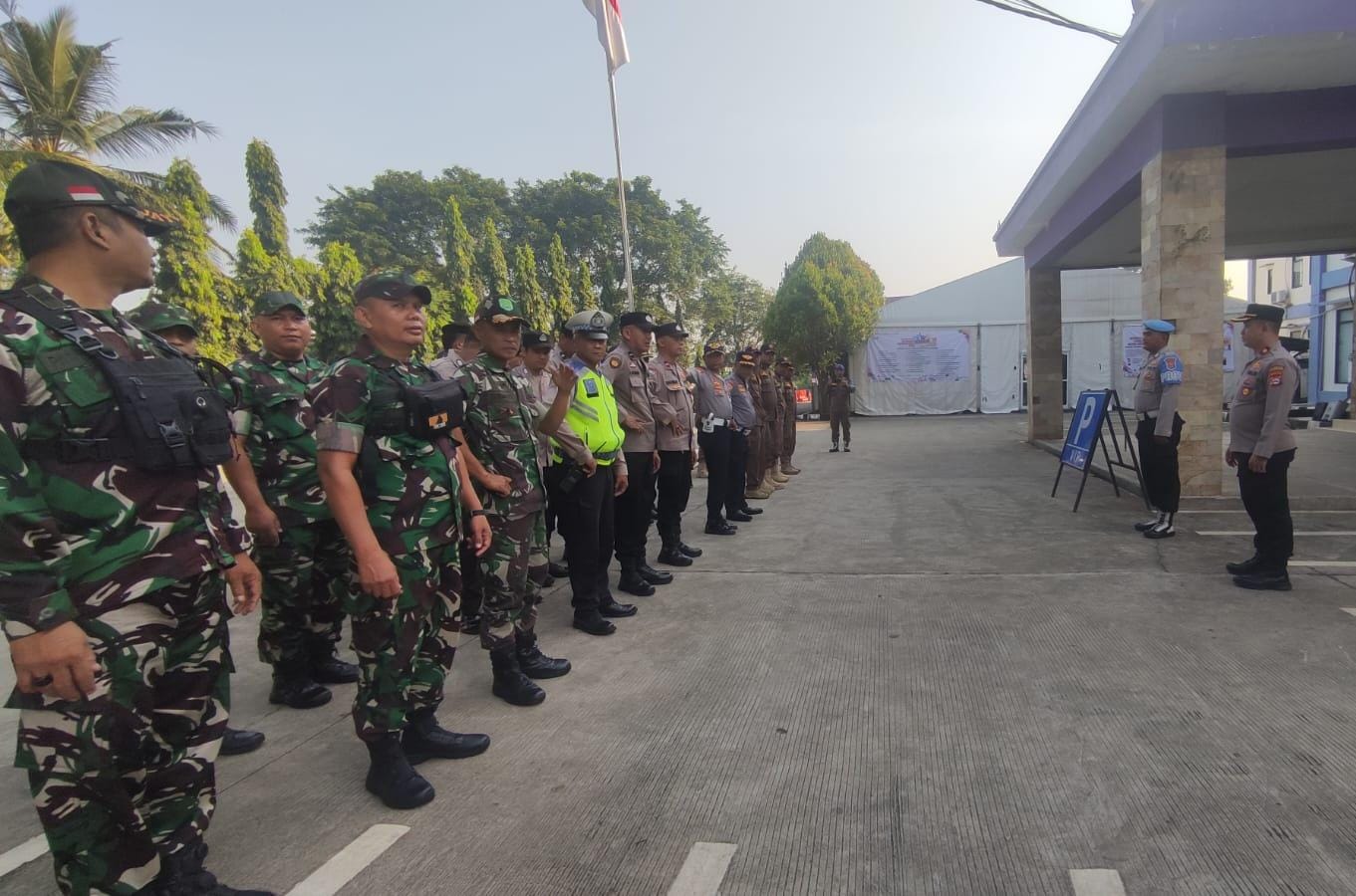 dalam rangka pengamanan Naker Fest Disnaker Kab. Tangerang, sebagai bentuk kesiapan personel gabungan, dari anggota Polsek Balaraja, anggota Polresta Tangerang, Danramil 05 Balaraja, Satpol PP dan Dinshub Kab.Tangerang untuk menjaga dan mengamankan kegiatan tersebut. Kamis (08/05/2025).