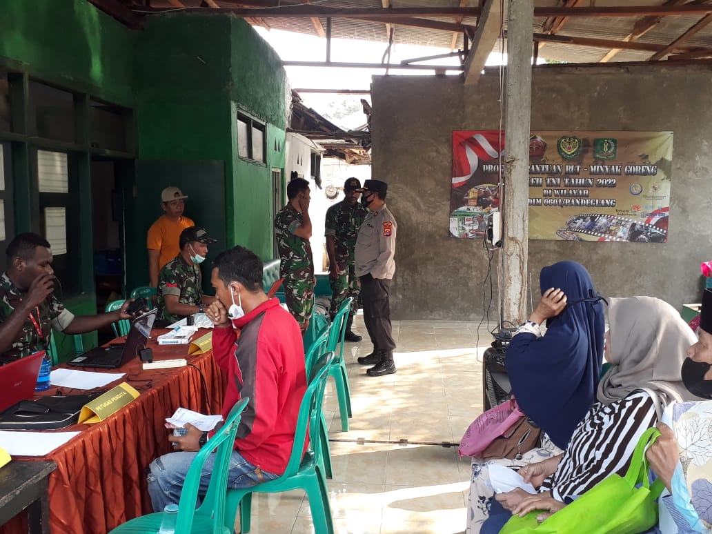 Baraknews Pandeglang – Kompol Yusup Kapolsek Menes menghadiri kegiatan Penyaluran Bantuan BTPKLW (Minyak Goreng) di Koramil Menes Pandeglang Banten. (18/05/2022).