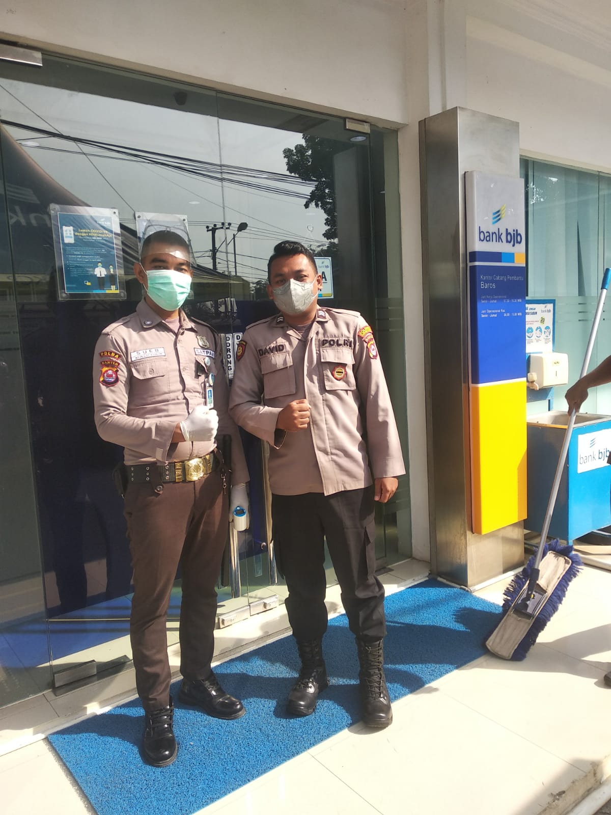 Baraknews Polsek Baros Polresta Serkot Polda Banten | Antisipasi Kejahatan di objek vital khusus nya di Bank. Anggota Polsek Baros Polresta Serkot Polda Banten Briptu David Purnomo melaksanakan Pengamanan di Bank BJB Baros, Jum’at (01/7/2022).
