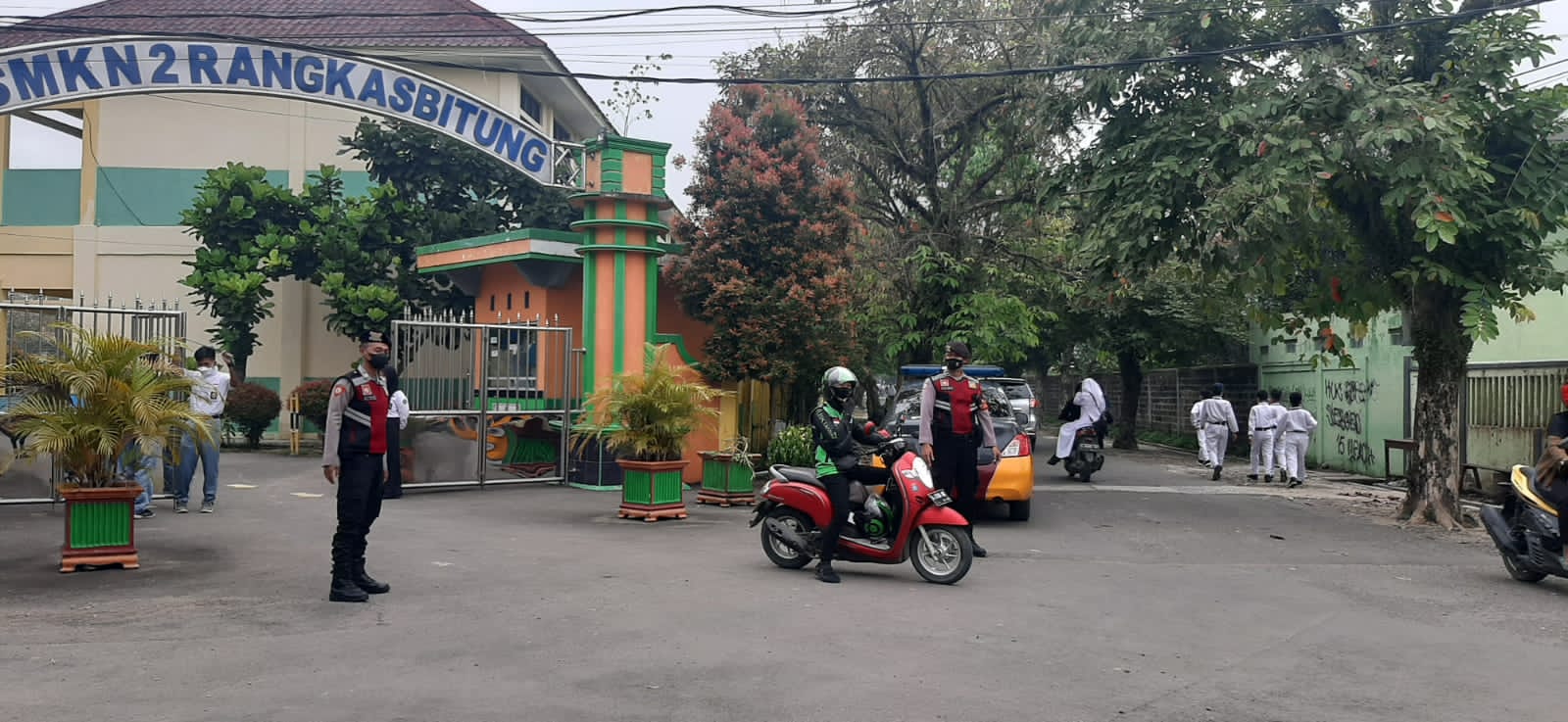 Baraknews LEBAK – Guna mencegah terjadinya Laka Lantas, Sat Samapta Polres Lebak Polda Banten Lakukan Patroli dan Pengaturan Lantas di depan SMKN 1 dan 2 Rangkasbitung, Kabupaten Lebak. Rabu (26/01/2022)