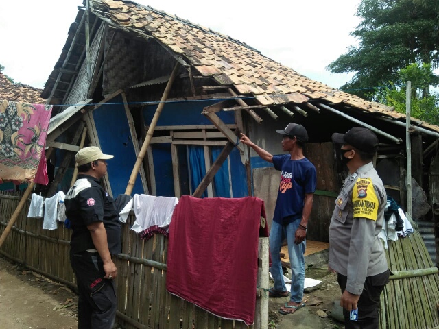 Bhabinkamtibmas mendampingi petugas kecamatan dan BPBD memberikan bantuan kepada korban bencana alam angin di sertain hujan yang mengakibatkan rumah korban roboh ibu rimah warga kp pasauran rt 01/02 ds umbul tanjung kemudian bhabinkamtibmas mengajak warga untuk berhati hati antisipasi bencana alam serta berperan aktif dalam menciptakan Harkamtibmas yang aman dan Kondusif.