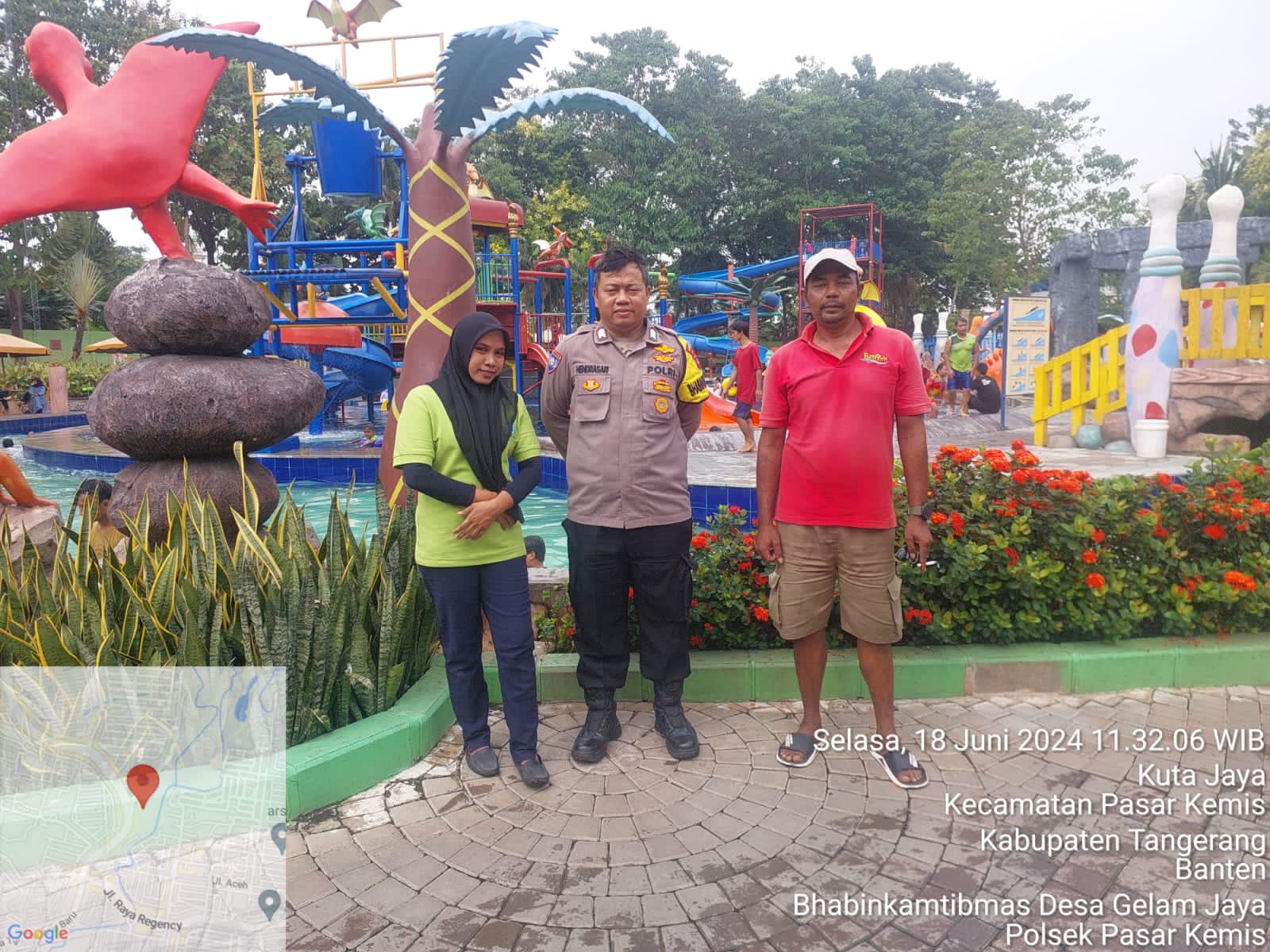 Tangerang – BhabinkamtibmasPolsek Pasar Kemis, Polresta Tangerang Polda Banten melaksanakan kegiatan sambang di Wilayah Kecamatan Pasar Kemis, tepatnya di Kolam Renang Funparl Water Boom, Desa Gelam Jaya Kecamatan Pasar Kemis, Kabupaten Tangerang. Selasa (18-06-2024)