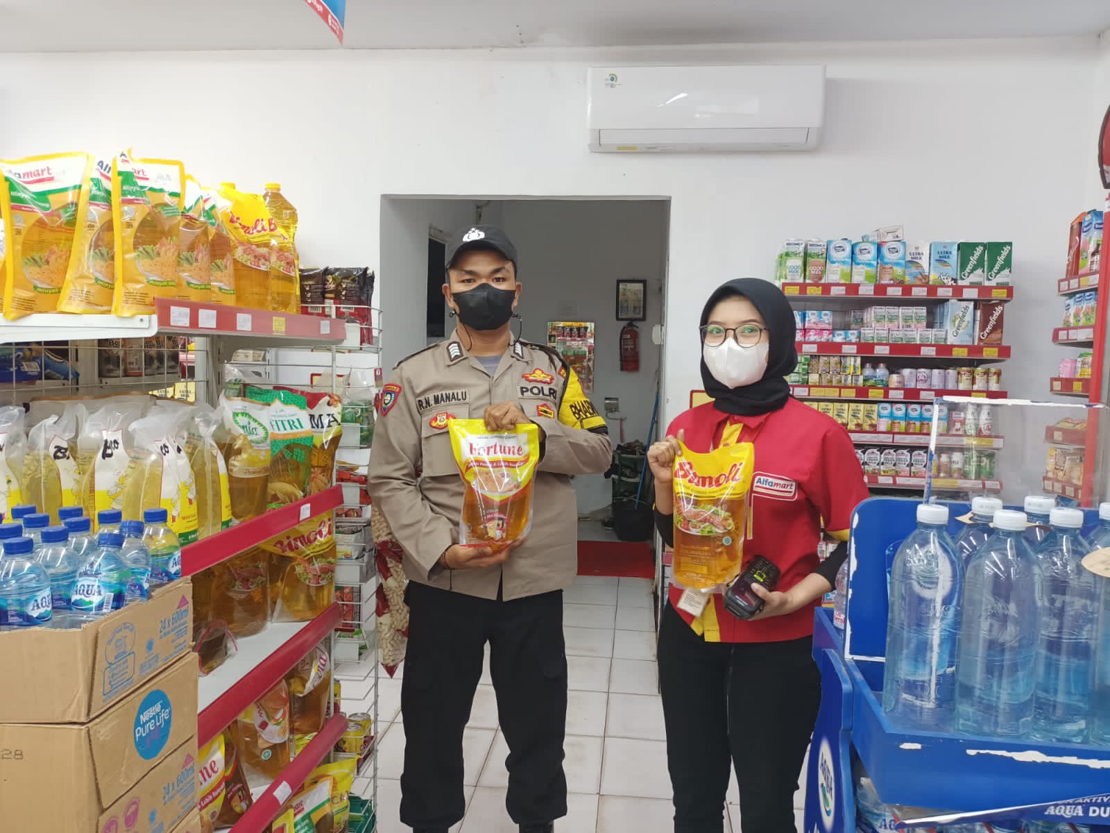 Bhabinkamtibmas Monitoring Stock dan Harga Minyak Goreng di Minimarket Alfamart, Desa Sukaharja
