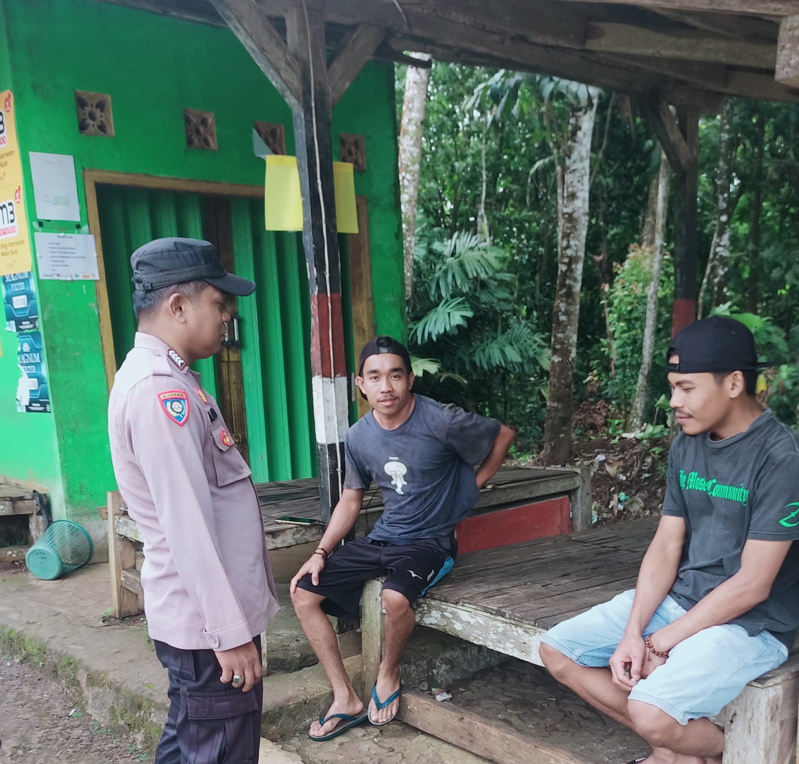 POLRES PANDEGLANG-Anggota Bhabinkamtibmas Polsek Cimanggu Polres Pandeglang terus melakukan sambang desa binaan dan tak henti-hentinya mengingatkan kepada warga masyarakat untuk waspada terhadap gangguan kamtibmas. Kamis (20/07/2023).