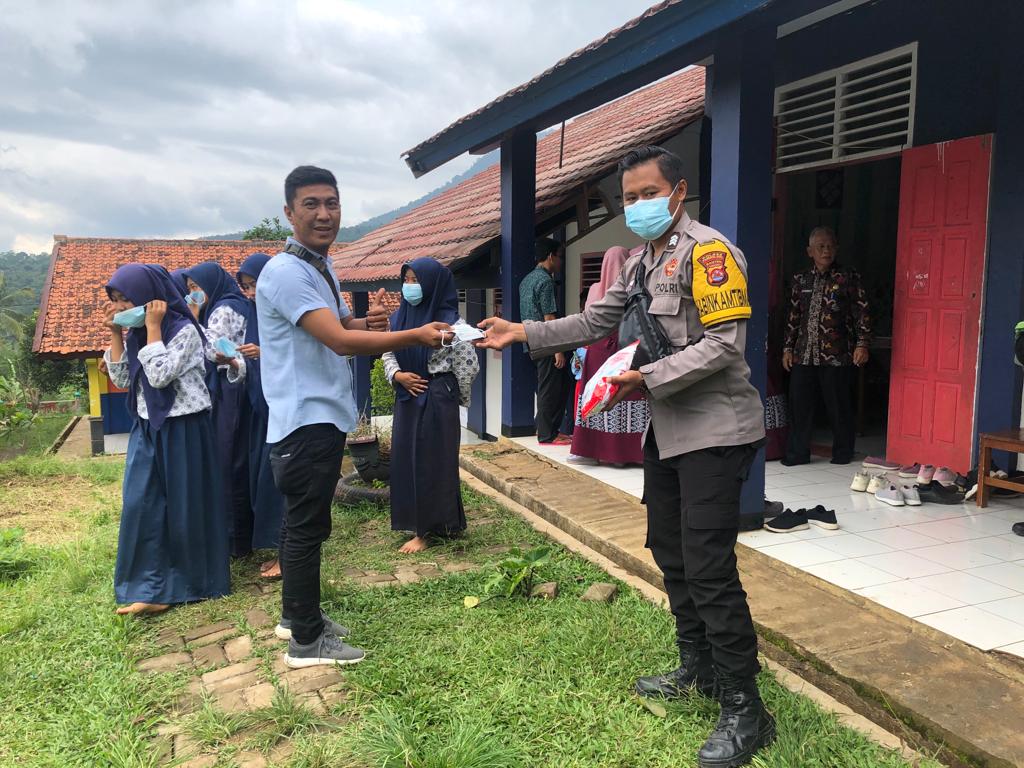 Unsur pengamanan oleh bhabinkamtibmas Polsek Cimanuk Polres Pandeglang, melakukan pengamanan jalannya giat vaksinasi sambil memberi semangat kepada siswa yang hendak di vaksin serta imbau patuhi prokes. Tak lupa bhabinkamtibmas menghimbau warga yang hadir mendampingi siswa untuk mematuhi protokol kesehatan.