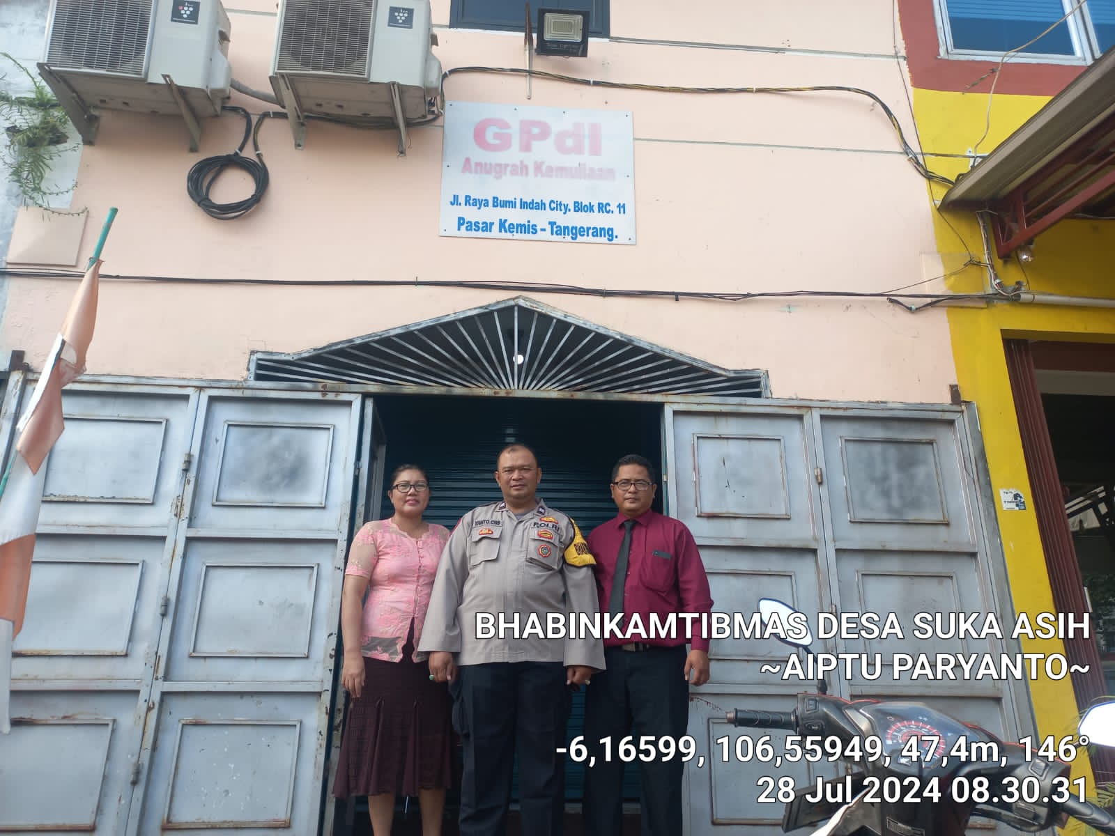 Untuk itu, Dalam rangka menjaga situasi Kamtibmas yang aman dan nyaman serta kondusif, Bhabinkamtibmas Polsek Pasar kemis melakukan monitoring sekaligus melaksanakan PAM kegiatan ibadah jemaat Kristiani di Gereja GKJ yang berada di Bumi Indah tahap I Blok RC 15-17, Kel. Kuta Jaya Kecamatan Pasar kemis, Minggu (28/7/2024).