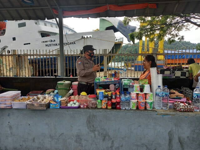 Bripka Fahmi Ardi sabagai anggota Bhabinkamtibmas Kp Merak melaksanakan giat sambang dan patroli dialogis kepada para pedagang yang berada di kawasan pelabuhan merak, memberikan himbauan kepada para pedagang agar selalu bersama sama menjaga kamtibmas dan tetap melaksanakan prokes agar tetap tercipta kamtibmas yg kondusif di wilayah sekitar.