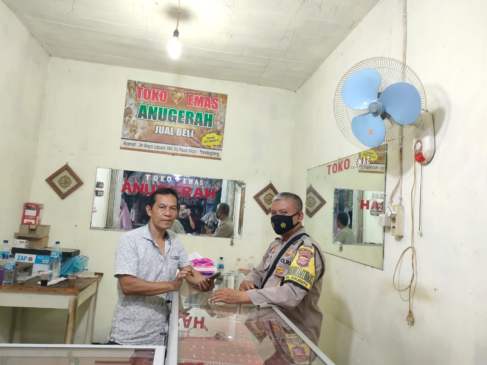 Himbauan kepada pemilik dan karyawan toko emas di bebera toko mas di Wilkum Polsek Pandeglang untuk memasang Cctv/Jeruji besi atau alarm, juga menjaga Kamtibmas serta untuk selalu patuhi prokes 5M.