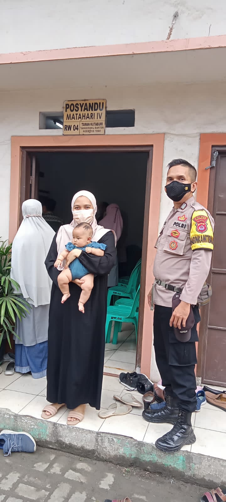 Baraknews Polsek Pasar kemis Polrrdta Tangerang Polda Banten- Bhabinkamtibmas Polsek Pasar kemis Bripka Belgi Prihartama Putra, SH Melaksanakan Pendampingan terhadap Petugas kesehatan Puskesmas Kuta Bumi, dalam rangka kegiatan Bulan Imunisasi Anak Nasional ( BIAN) untuk Pemberian suntikan campak Rubella yang berlokasi di Posyandu Matahari IV Rw 04 Kelurahan Kuta Bumi, Kamis, (04-08-2022).