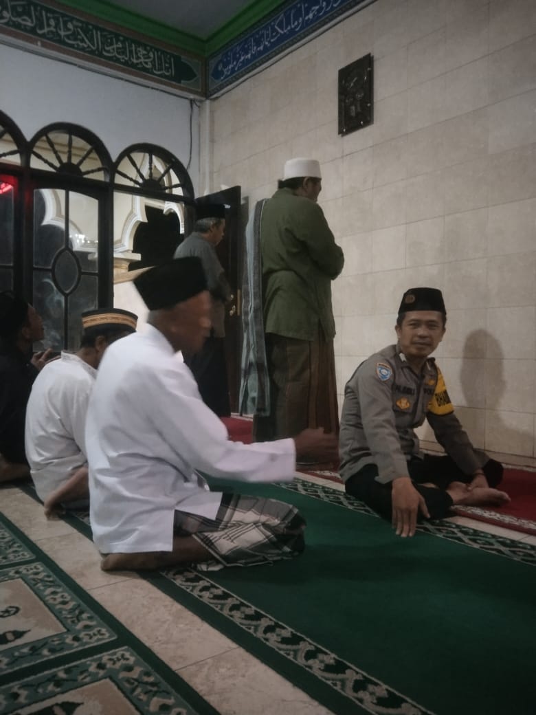 Selepas sholat tarawih Bripka Ahmad Sibli Supriyatna memberikan pesan kamtibmas kepada masyarakat untuk menciptakan kondusifitas di Bulan Suci Ramadhan dan mengajak tokoh agama untuk ikut serta berperan aktif menjaga keamanan.