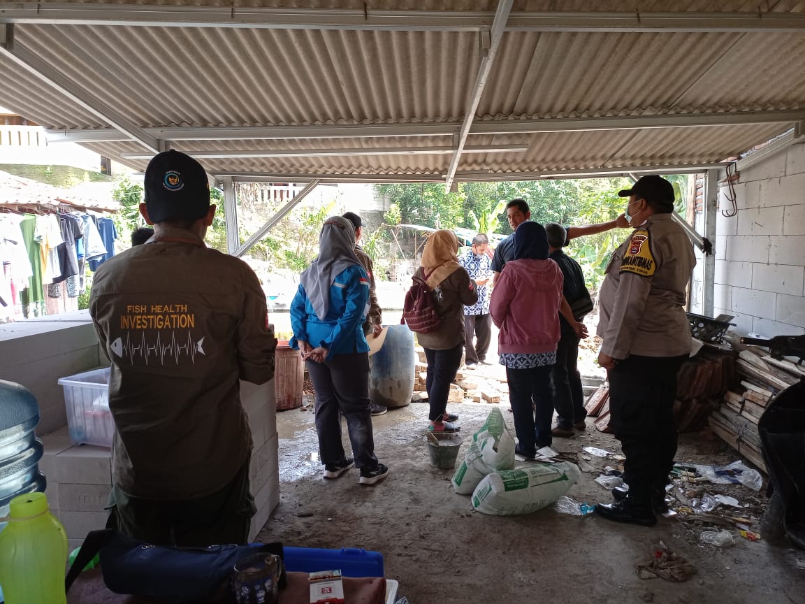 Baraknews Polres LEBAK, -Bhabinkantibmas Polsek Rangkasbitung Polres Lebak BRIPKA Wahyu Jatmiko, memberikan pendampingan kepada petugas Badan Pengujian Kesehatan Ikan dan Lingkungan (BPKIL) sekaligus mengambil sampel serta memeriksa ikan jenis Lele di lakukan pemeriksaan hasil Laboraturium, di kampung Cijoro Bendungan, Desa Rangkasbitung Timur, Kecamatan Rangkasbitung, Kabupaten Lebak.Jumat (26/8/2022)