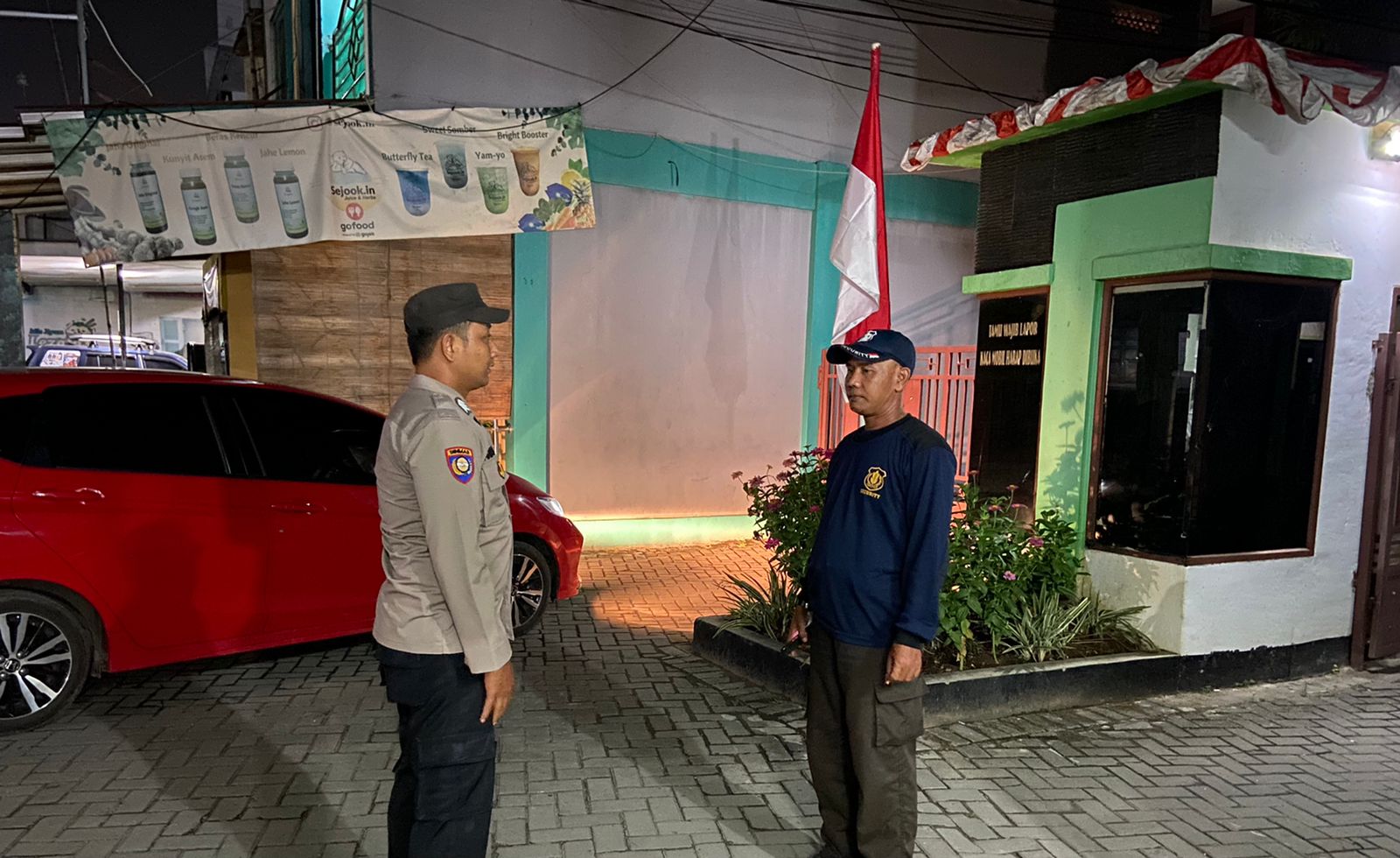 Baraknews Polsek Taktakan Polresta Serkot | Anggota Polsek Taktakan Bripka Anggi Novanda Bhabinkamtibmas Kelurahan Sepang Kecamatan Taktakan Kota Serang laksanakan kegiatan sambang dan silaturahmi ke warga dan security di Pos Security Perumahan Safira Resident di Wilayah Hukum Polsek Taktakan Polresta Serang Kota Polda Banten, Jum’at (05/08/2022) dini hari.