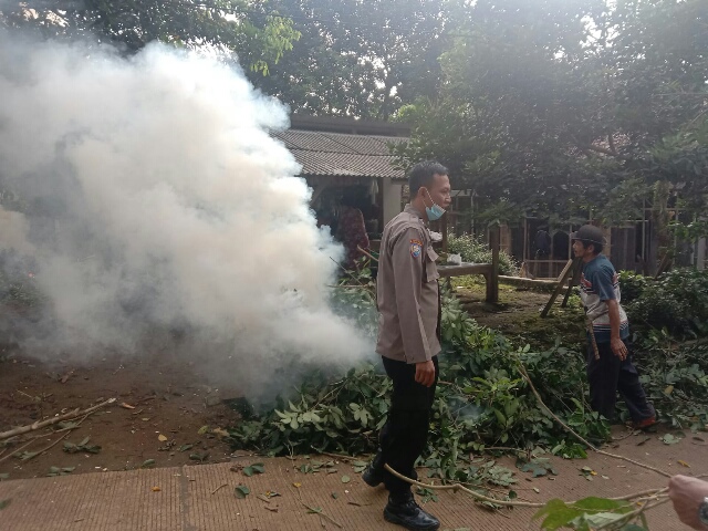 BRIPKA Ega Selaku bhabinkamtibmas Ds.bantar waru bersama Babinsa melaksanakan kegiatan gotong royong memotong dan membersihkan ranting pohon yang menjulang ke jalan bersama masyarakat kp.Ciriung, Kegiatan tersebut bertujuan menghindari adanya pohon tumbang sebab saat ini cuaca di Kab.serang khususnya Kec.Cinangka sedang menghadapi cuaca ekstrim.