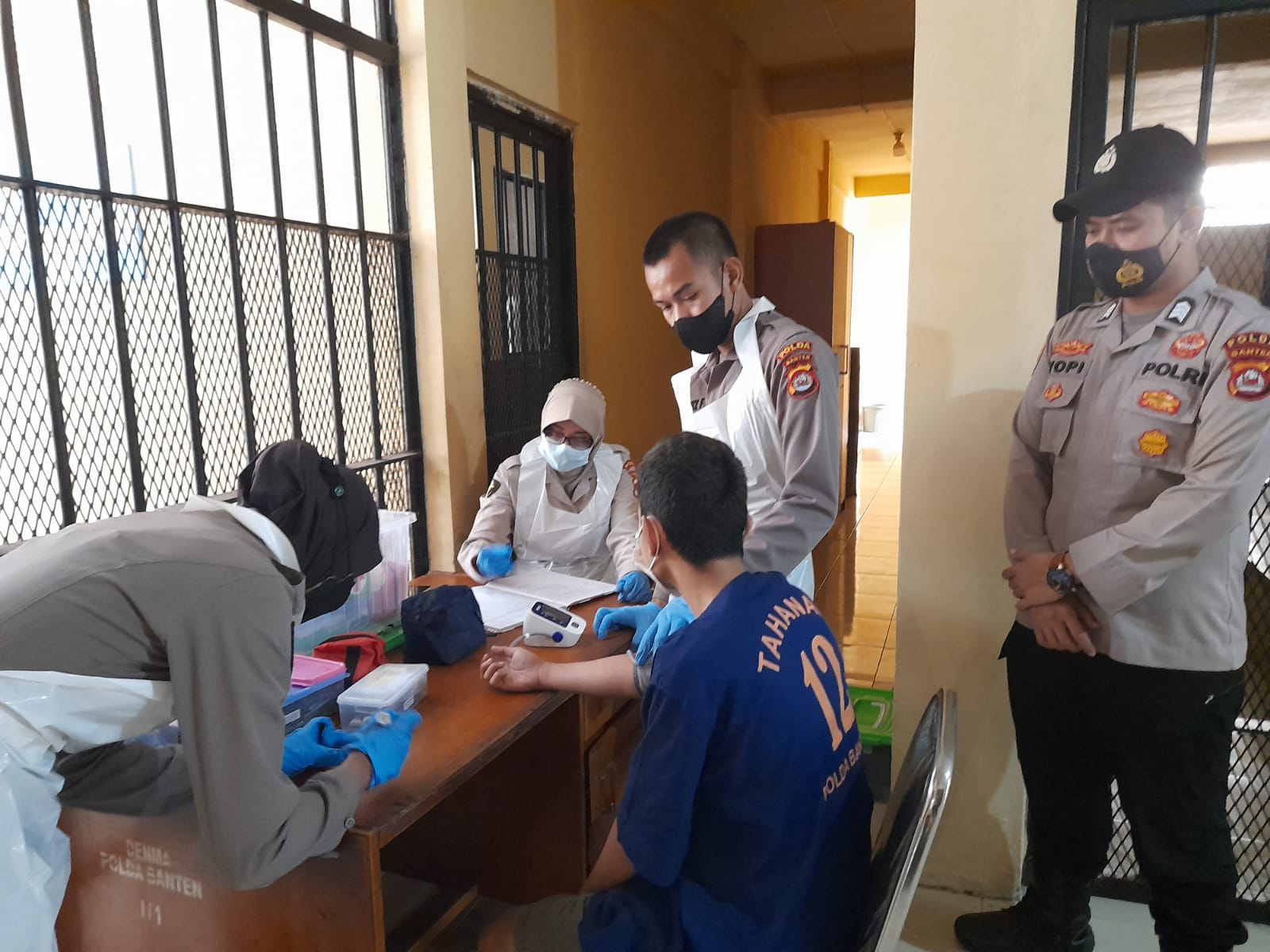 Kegiatan pemeriksaan kesehatan terhadap tahanan dipimpin oleh Kaur Doksik Dr. Eka Mariani beserta personel Biddokkes Polda Banten.