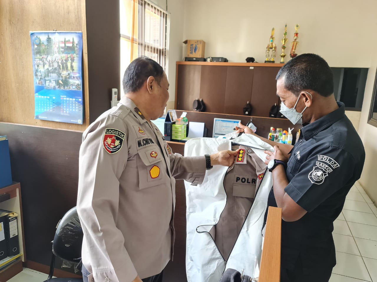 Baraknews Serang Biro Logistik Polda Banten mendistribusikan Perlangkapan perorangan lapangan (Kaporlap) Polri berupa Pakaian Dinas Lapangan (PDL) II two tone Pejabat utama Polda Banten diruangan Biro Logistik Polda Banten pada Kamis (09/06).