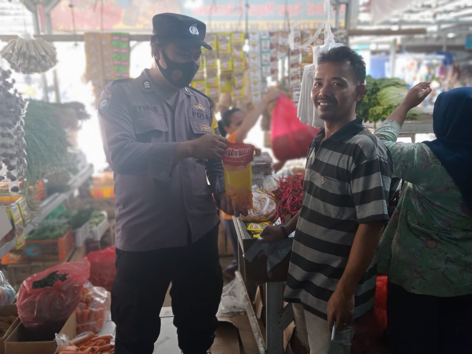 Baraknews Polsek Mancak Polres Cilegon Polda Banten ~ Jajaran personel Bhabinkamtibmas Polsek Mancak Polres Cilegon Polda Banten terus konsisten dalam memantau dan mengecek perkembangan ketersediaan dan harga minyak goreng dengan langsung blusukan ke dalam Pasar Mancak. Rabu (20/07/2022).