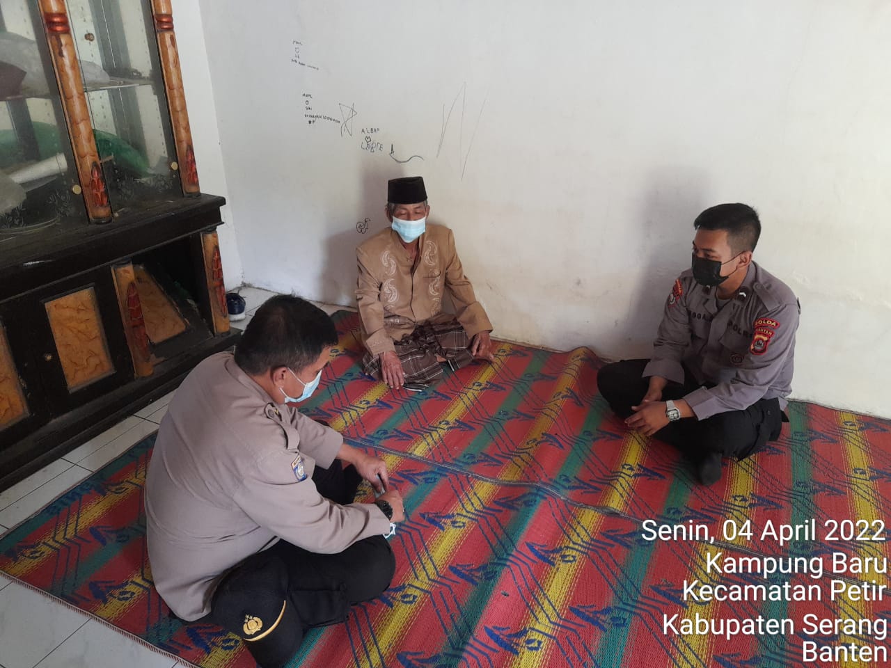 Baraknews Serang – Wujud kedekatan Polri dengan ulama dan tokoh agama, Subdit Bintibsos Ditbinmas Polda Banten dipimpin Iptu Hasan Basri melakukan kunjungan silaturahmi kepada Ustad Jahiri tokoh agama Kampung Baru, Kecamatan Petir, Kabupaten Serang pada Senin (04/04).